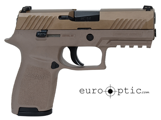 The P320 FDE Compact offers a smooth, crisp trigger to make any shooter more accurate, an intuitive, 3-point takedown and unmatched modularity to fit any shooter and any situation. Its compact frame is ideal for target shooting and home defense, as well as many concealed carry scenarios. This modular, striker-fired pistol features a compact grip, compact slide, and SIGLITE Night Sights.