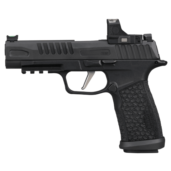 The Sig Sauer P365‑FUSE Romeo‑RS is a compact, striker‑fired 9mm pistol built around the longer‑slide/longer‑grip XF platform to deliver enhanced controllability and capacity while remaining carry‑friendly. The 4.3" barrel and longer slide improve sight radius and ballistic performance versus the micro P365, while the integrated Romeo‑RS red‑dot footprint and included Romeo‑RS optic options (on compatible builds) speed target acquisition for defensive or duty use. The pistol features aggressive LXG textured grip surfaces for a secure purchase, a Nitron‑finished slide for corrosion resistance, fiber‑optic sights for fast iron‑sight acquisition, and a robust magazine set (two 21‑round + one 17‑round magazines in this package) to maximize on‑gun rounds between reloads. Striker firing system with modern internal safeties and a chassis that accepts P365‑series accessories make the FUSE model versatile for carry, range, and duty roles.