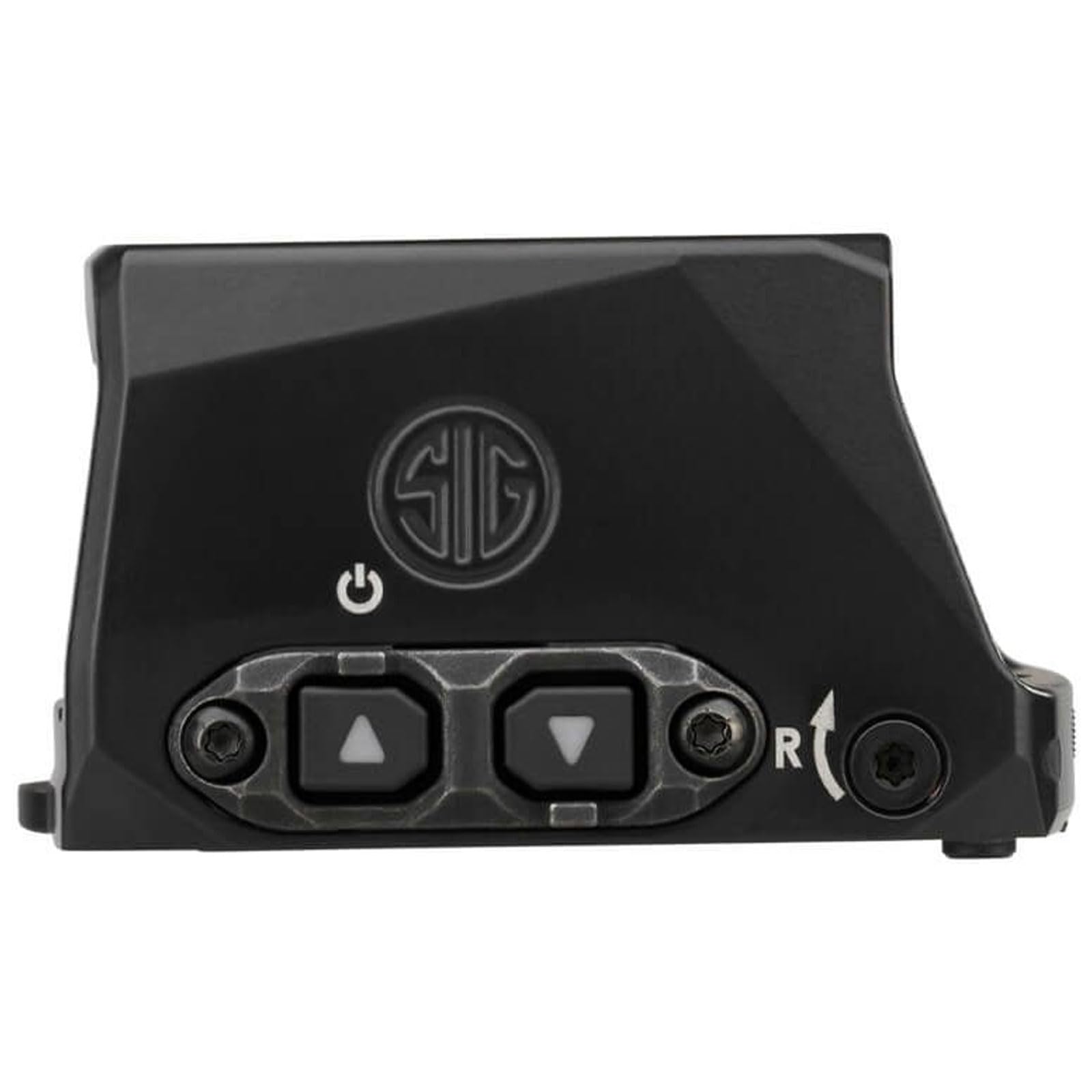 The ROMEO-X SIG-LOC is powered by a single CR1632 battery and features a minimum continuous runtime of 20,000 hours at the medium brightness setting. The battery compartment is side-mounted, allowing the battery to be changed without removing the optic from the pistol. The ROMEO-X SIG-LOC’s is available with 3 reticle options, a 2 MOA Dot / 32 MOA circle combination, a 3 MOA Dot, or a 6 MOA Dot. Other features of the ROMEO-X SIG-LOC include independent brightness adjustment buttons that are recessed within a protective plate which can be activated even with gloves on. Buttons have bump features above UP and below DOWN, so they can be determined by feel.