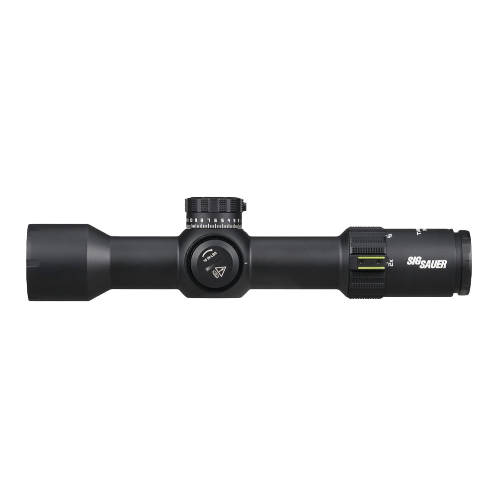 The Sig Sauer TANGO‑DMR 2–12×42 is a compact, first‑focal‑plane (FFP) tactical riflescope built around a 34mm main tube and designed for precision work from close range out to medium distances. It pairs a low‑magnification wide field of view with a 12× top end for precise holdovers using the MRAD Milling 2.0 reticle. The illuminated reticle (battery powered) and tactile 0.1 MRAD adjustment clicks make the scope well suited to DMR, PRS‑style, and tactical use; rugged construction, matte black finish, and side‑focus parallax adjustment add practical durability and in‑the‑field adjustability.