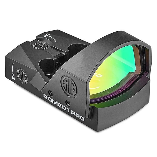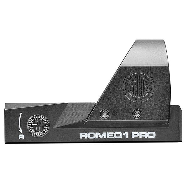 The Sig Sauer ROMEO1PRO Reflex Sight is a no nonsense compact and combat-ready red dot sight designed for use with handguns. The ROMEO1PRO features Sig's MOTAC (Motion Activated Illumination System) that activates red dot illumination when motion is detected and deactivates dot illumination when motion ceases - allowing for up to 20,000 hours of runtime per battery. With an upgraded emitter forsuperior brightness, the ROMEO1PRO is capable of mounting to any SIG pistol or any other pistol machined to accept the ROMEO2 / PRO reflex sight interface and mounting hole spacing using the included M4 mounting screws. The ROMEO1PRO features Sig's TruHold Lockless Zeroing System that utilizes twin adjustment springs and ensures return to zero shot after shot.