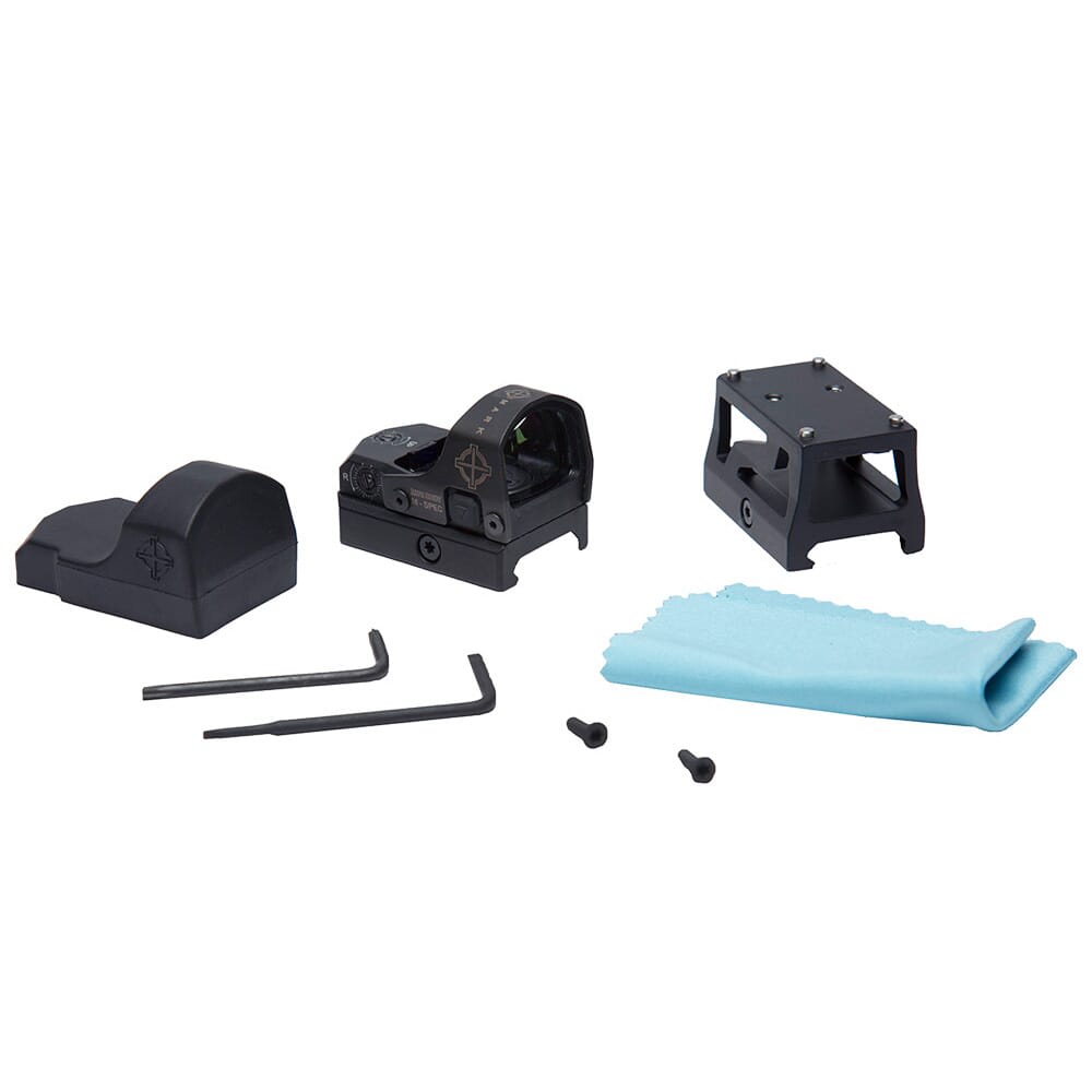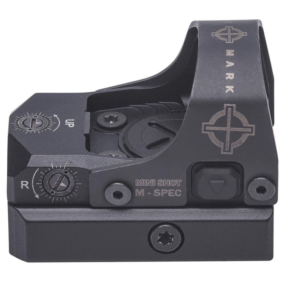 Built for law enforcement officers and professionals, the compact Mini Shot M-Spec Reflex Sight is the perfect optic for competition shooting, hunting and LE applications on shotguns, pistols and AR’s. The kit includes a low profile mount for shotguns and pistols along with a riser mount for AR platform rifles. This rugged optic is 100% waterproof and features a durable aluminum housing with a steel protective shield. Doubling the battery life of the competition, the Mini Shot M-Spec’s extremely low power consumption provides 300-30,000 hours of battery life on one CR1632 battery, while its 12-hour auto shutoff prevents the unit from running out of batteries while you’re not using it. Easy windage and elevation click adjustments make zeroing the 3 MOA red dot reticle a breeze, even without any special tools. 10 brightness levels give shooters perfect reticle options from low light situations to the brightest days. An ambidextrous digital switch allows the M-Spec to be easily turned on and off by both left and right handed shooters.
