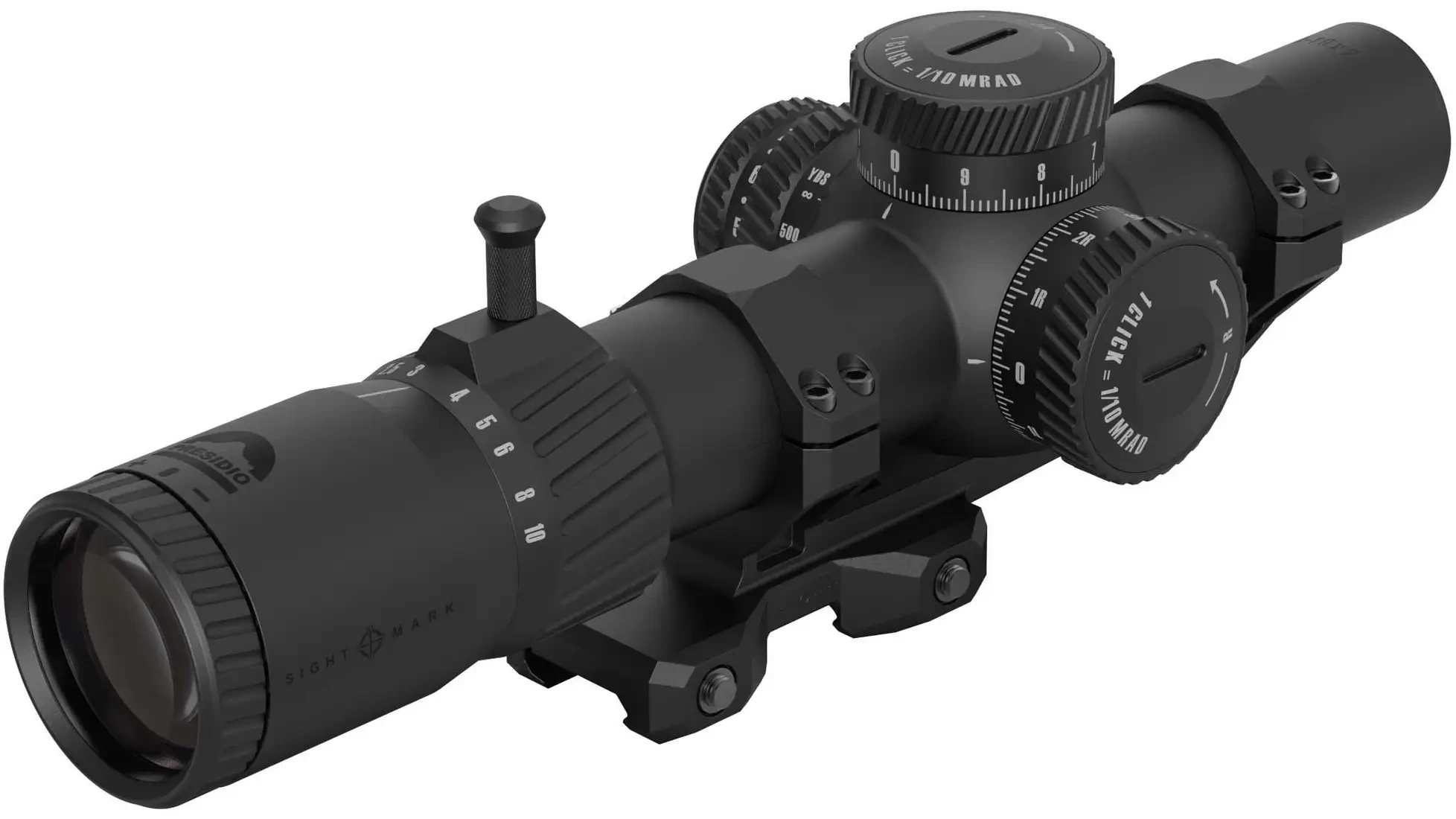 The Sightmark Presidio 1–10×26mm Riflescope is a versatile, compact optic designed for a wide range of shooting applications from close‑quarters to moderate distances. It features a 1.34inch main tube and a 26mm objective lens paired with a 1× to 10× magnification range, giving shooters the flexibility to quickly acquire targets at low magnification while still having the reach for precision work at higher power. The scope uses a second focal plane (SFP) reticle, meaning the reticle stays the same size regardless of magnification, which many shooters prefer for conventional holdovers at a chosen magnification setting. Built for durability and reliability in the field, the Presidio has fully multicoated optics for improved light transmission and clarity, is shock‑resistant for recoil from a wide variety of calibers, and is sealed to be waterproof and fog‑proof for dependable performance in changing weather conditions. The included CRED10 fiber‑optic reticle enhances visibility in varied lighting without relying on batteries.