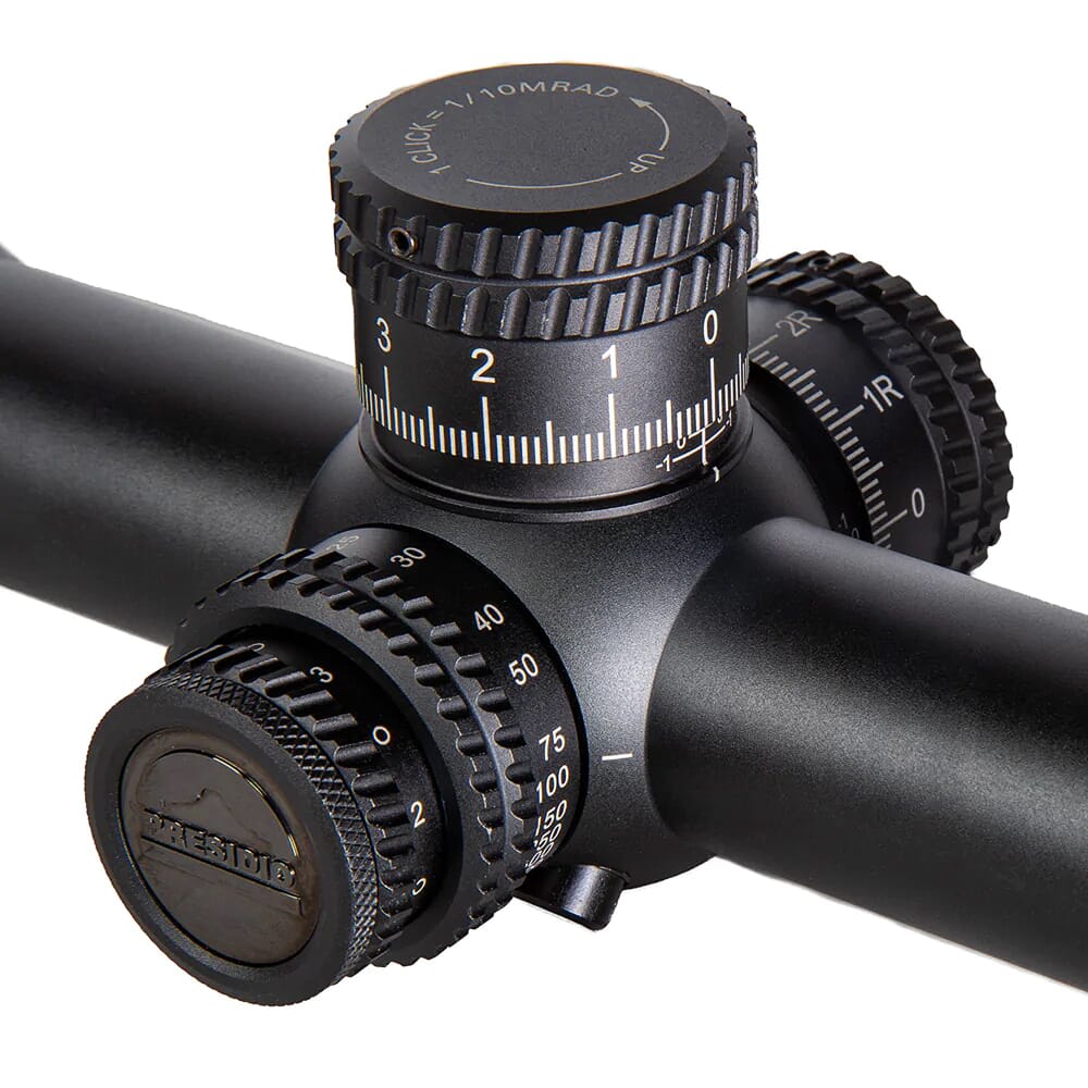 Sightmark’s Presidio 3-18x50 is perfectly suited for close to mid-range engagements, and is ideal for pairing with a bolt action or AR-type platform. It comes equipped with the advanced LR2 reticle, which is composed of an ultra-fine crosshair for precise shot placement, as well as a pyramid structure of hold-over points and hashmarks to accommodate for bullet drop and windage when shooting at extended ranges. The turrets are exposed and feature knurling on the adjustment knobs to provide a tactile response when making adjustments, and zero-stops allows for a quick return to zero. In addition, the Presidio 3-18x50 features an illuminated reticle for greater accuracy in low light conditions.