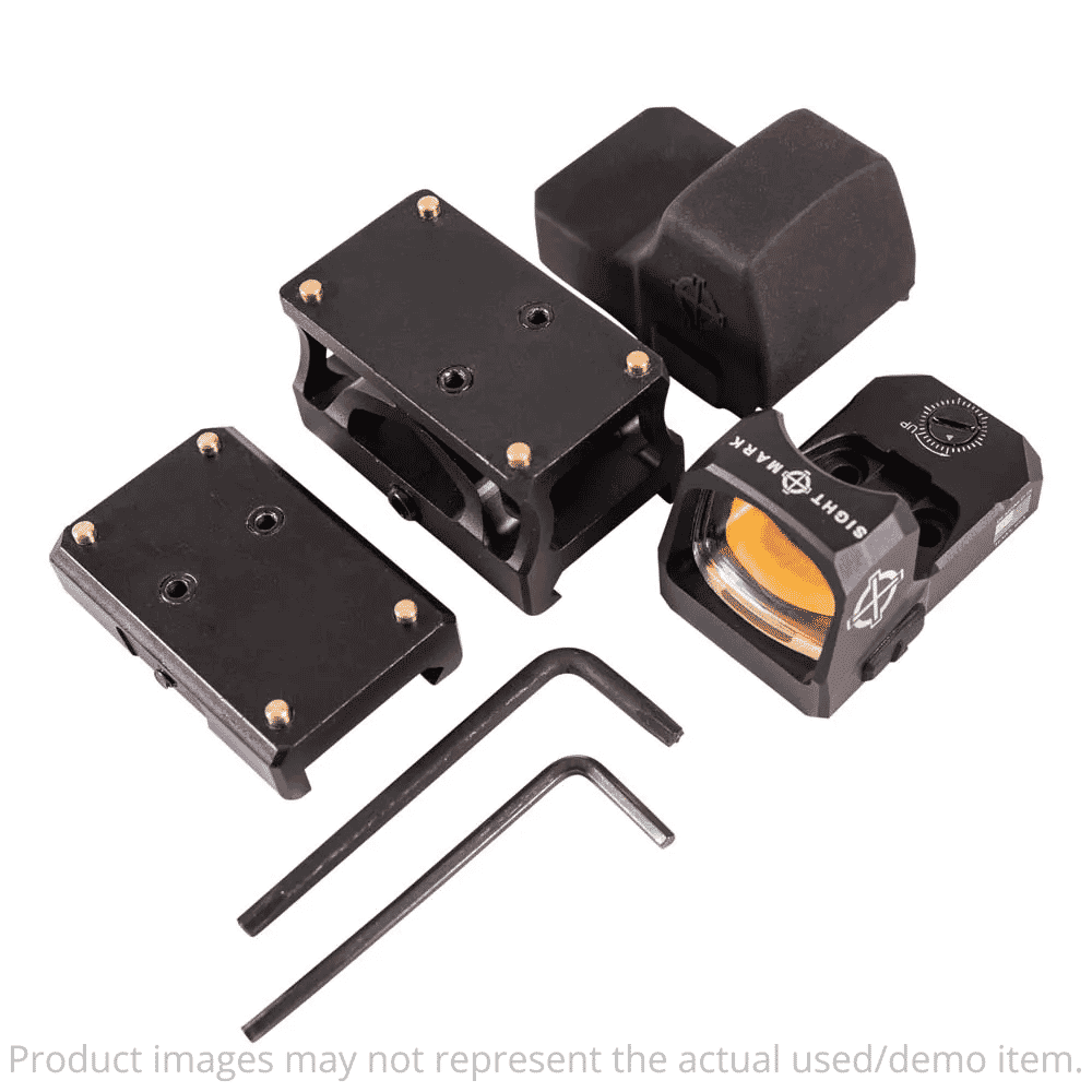The Sightmark Mini A-Spec is an ideal optic for tactical simulations, competition shooting and home defense. The Mini A-Specfeatures a steel protective shield, making the 2.3 ounce Mini, one of the most reliable compact sized optics available.The kit includes a low-profile mount for pistols and shotguns along with a riser mount for AR platform rifles. Use the MiniA-Spec in virtually any environment, from daytime to low-light conditions complete with a 2 MOA red dot reticle withadded ambidextrous switch controls to benefit both left- and right-handed when adjusting through 10 brightness levels. MiniA-Specs boast a coated and scratch resistant lens, features a low consumption battery life on a single CR1632, is IP67 ratedwaterproof, dust-proof and shockproof.