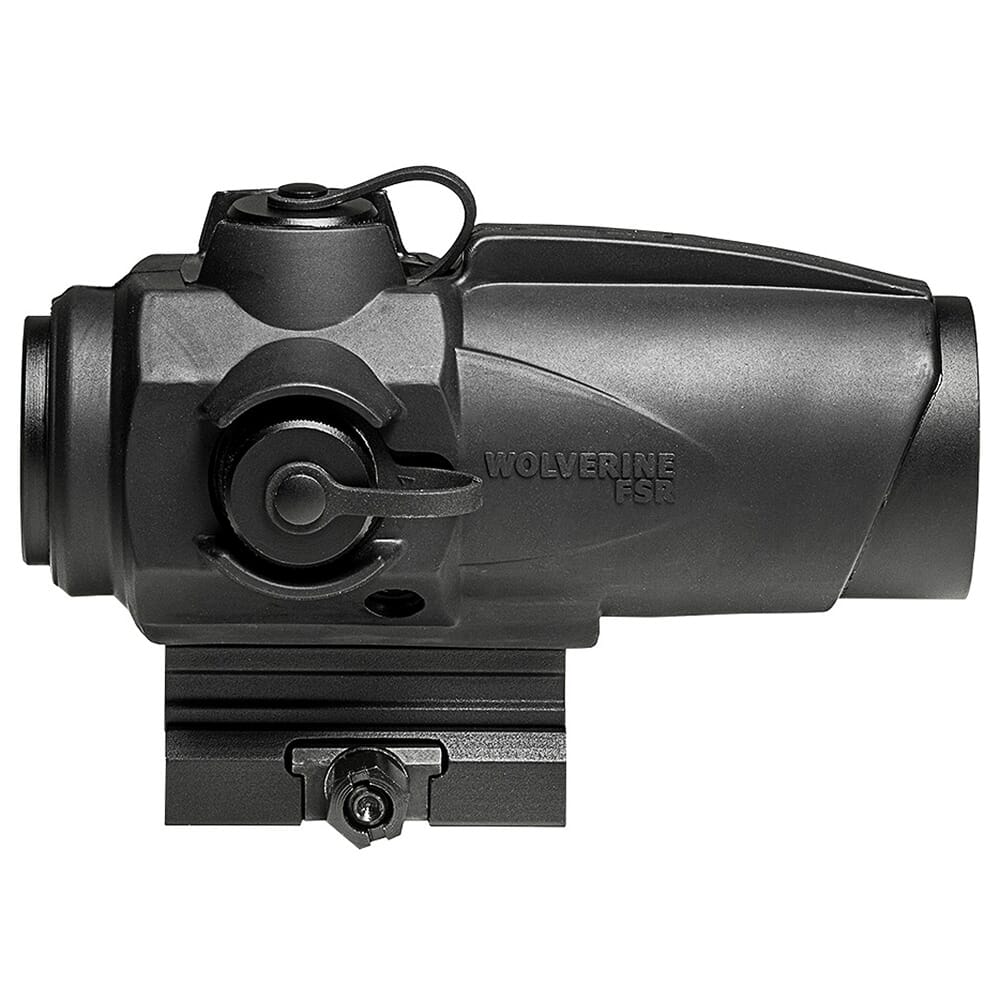 Designed for short-range engagements and quick target acquisition, the responsive Wolverine FSR 1x28 is a durable red dot optic with a 2MOA dot reticle. The Wolverine’s extremely low power consumption delivers an incredible 1,000,000 hours battery life on low and 6 years continuous use on setting 6 from just a single AA battery. Rubber armored and constructed of a single piece of 6061-T6 aluminum, the Wolverine is waterproof, fog-proof and shockproof. Glass is protected by a scratch resistant, anti-reflective lens coating. All Wolverines have night vision modes, making them compatible with night vision devices. The FSR has ergonomic digital switch controls, making it quick and easy to operate when seconds count. Wolverine FSRs include: a rubber lens cover, picatinny mount and riser for absolute co-witness.