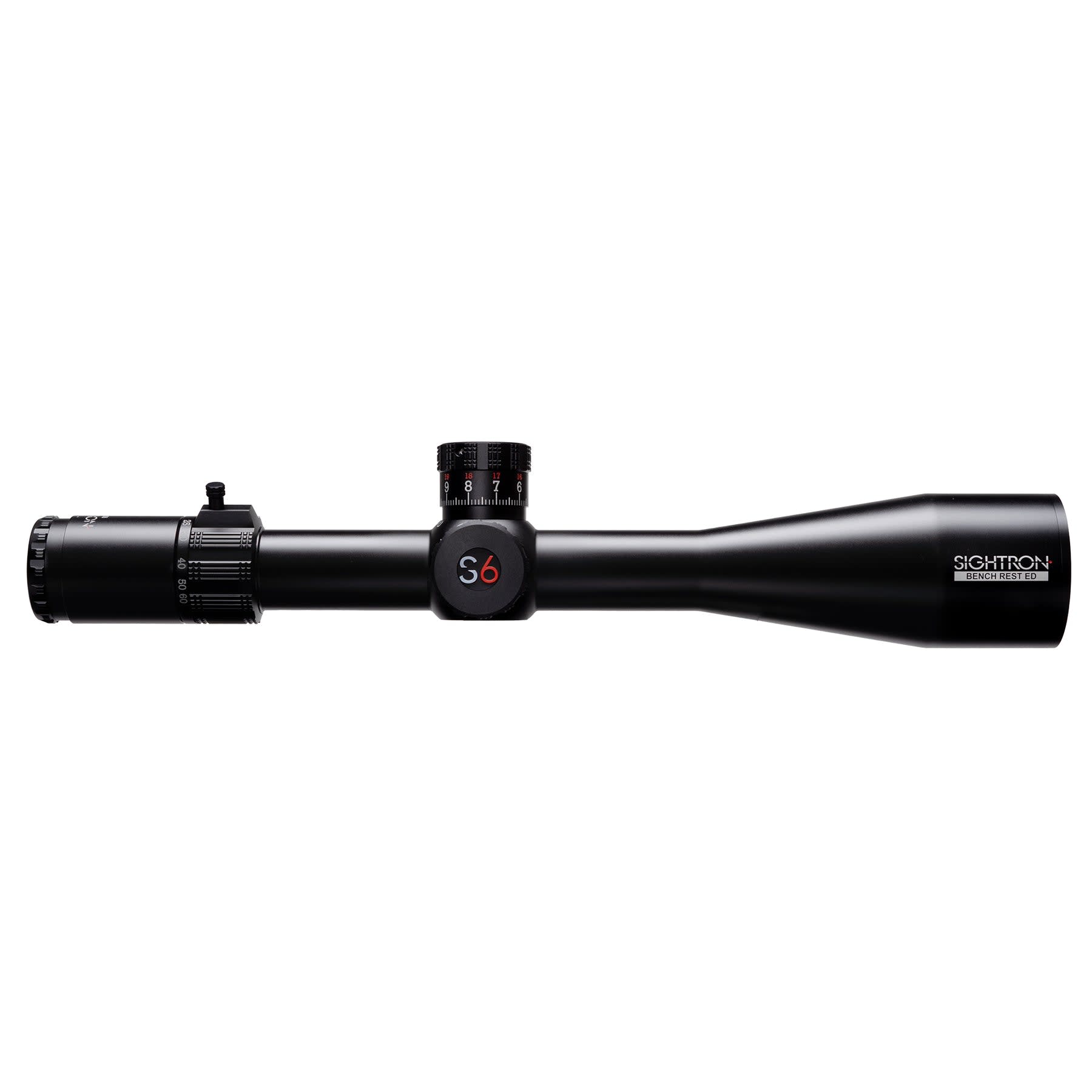The Sightron S6 10-60x56 ED BR is a premier benchrest and long-range precision riflescope engineered for competitive shooters who demand the finest optical performance and mechanical precision available. Featuring Sightron's Extra-Low Dispersion (ED) glass and proprietary ZACT-7 Revcoat multi-layer lens coating system, this scope delivers exceptional color fidelity, contrast, and light transmission for a brilliantly clear and sharp image across the entire 10-60x magnification range. The 56mm objective lens gathers abundant light for outstanding performance in a variety of lighting conditions, while the non-illuminated MOA-FTD second focal plane reticle provides a precise, uncluttered sight picture ideal for benchrest and field target competition. Exposed zero-reset turrets with 1/8 MOA click adjustments deliver tactile, repeatable corrections with confidence, and the 34mm main tube provides a generous range of elevation and windage adjustment. Built to Sightron's exacting standards with a lifetime warranty backing every scope, the S6 10-60x56 ED BR is a world-class optic that represents exceptional value for the serious competitive shooter.