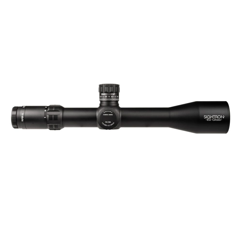 Sighttron’s SVIII 5-40x56 ED FFP Riflescope delivers the precision that long range target shooters and hunters demand. This long range precision optic is available with 2 reticles – the LRM and MH-6. Both versions of the SVIII 5-40x56 ED FFP deliver 40 MILS of elevation and 20 MILS of windage with precise tactical style knobs.