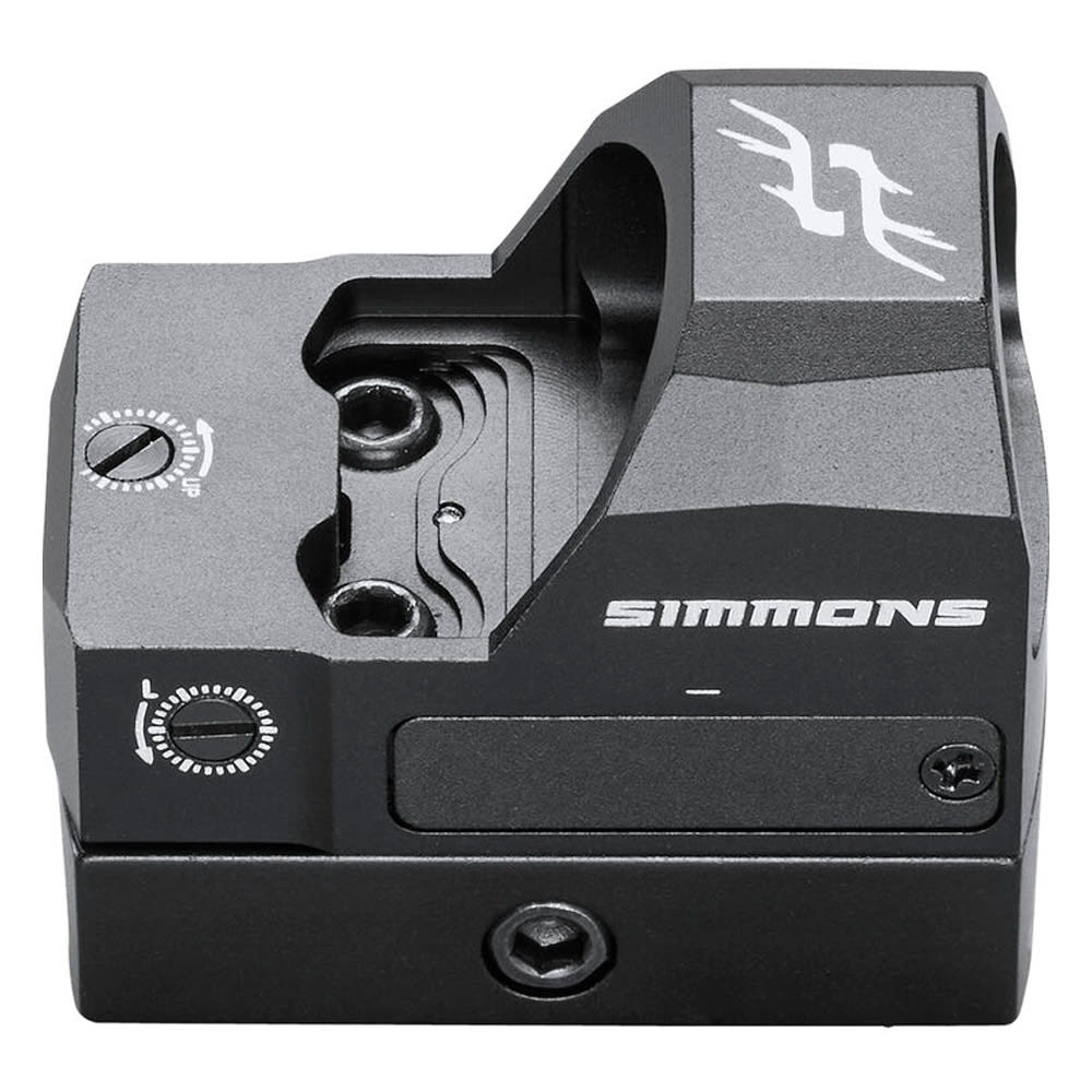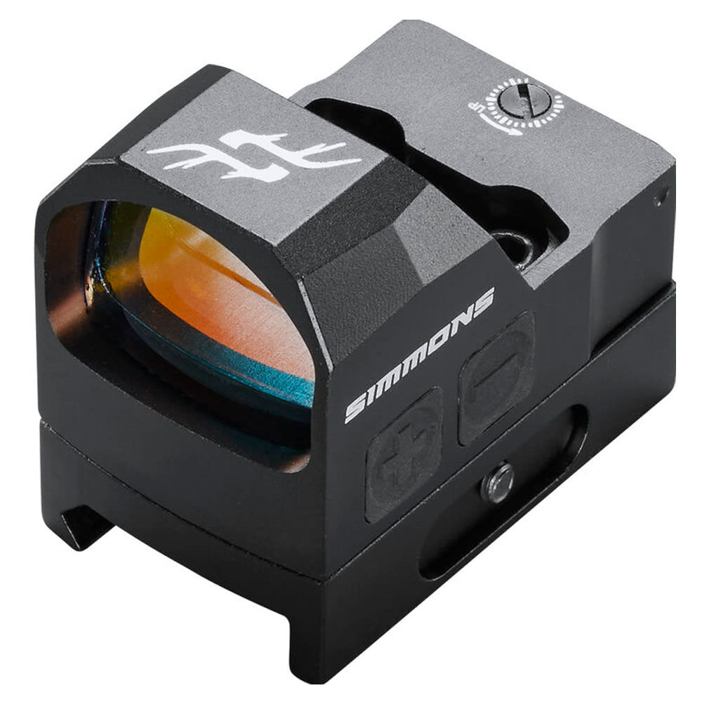 The Simmons Pro Target 1x25 Reflex Sight is both affordable and versatile. It features a crisp 4 MOA dot with 8 levels of illumination from a point source LED and a battery life of 5000+ hours. It can attach directly to any Delta Point Pro footprint for use on handguns but also includes a weaver style mount for use on rifles, carbines, and shotguns. The battery loads from the side, allowing the battery to be changed without removing the optic from the host weapon. Ships with a protective shroud, CR2032 battery, mounting screws, tools and lens cleaning cloth.