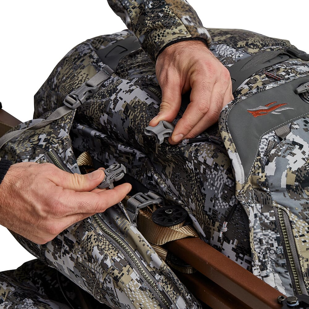 The Sitka Gear Cargo Box is a game changer for outdoor enthusiasts, offering an extraordinary level of convenience and organization. Its extra-large bucket-style design boasts a staggering 24 storage compartments, ensuring you can carry everything you need for your outdoor adventures. The quick-detach tree-stand carry system and dedicated climbing-stick storage pockets make transporting your gear comfortable and hassle-free. Designed with the utmost attention to detail, it features breathable air-mesh back panels, exterior pockets for camera arms or bow hangers, and even Gore™ Optifade™ Elevated II mesh gear viewing windows. With stay-secure front accessory straps, hide-away top and bottom accessory straps, and a top-lid tangle-free pull rope pocket, the Cargo Box keeps your gear secure and easily accessible. It also includes thoughtful additions like a drop-away front panel, wind-indicator pocket, and water-bottle storage pocket. The load-bearing shoulder straps and hide-away load-bearing secure straps make it comfortable to carry even when fully loaded. Plus, the durable water-repellent finish ensures your gear stays protected. With a generous 220 cubic inches of storage capacity, the Sitka Gear Cargo Box is a must-have for outdoor enthusiasts who want to take everything they need on their adventures.