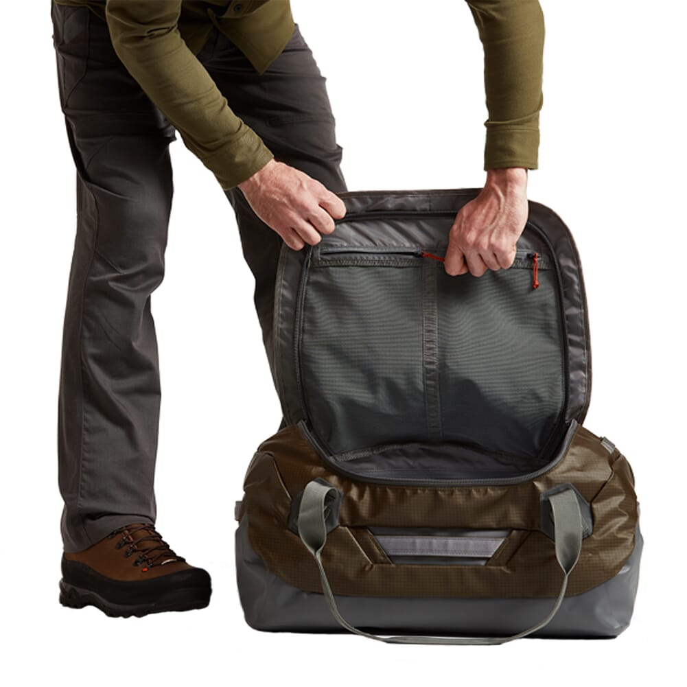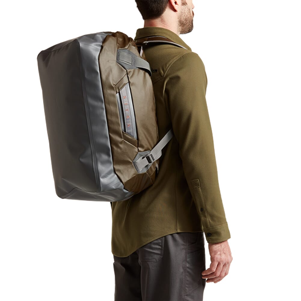 The Sitka 50 Liter Drifter Duffle is the perfect size to accompany you on the plane with your optics, electronics and a change of clothes. The highly water-resistant 150D TPU coated rip-stop fabric and water-proof 450D welded TPU coated rip-stop floor keep your gear dry when transiting in a boat, on horseback or flying home with memories. The removable shoulder straps make carrying gear easy and the four side handles and top carry handle assure you'll keep grabbing for this bag on every adventure. The zippered pocket on the top lid help organize documents and magazines while the 3 internal mesh pockets keep gear sorted and clean from dirty clothes.