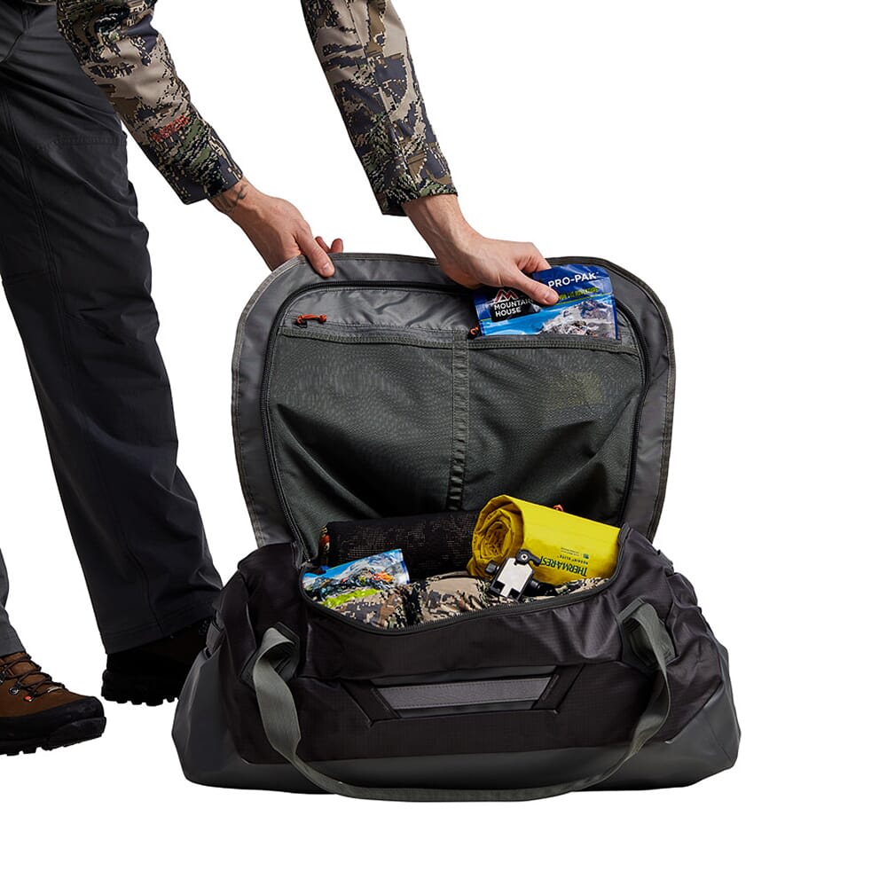 The Sitka Drifter 75 Liter Duffle has enough room for your SITKA system and then some. Rugged 150D TPU coated rip-stop fabric in the main body and a water-proof 450D welded TPU coated rip-stop floor assure your gear is protected from the elements and the airlines. Removable shoulder straps provided for easy carry through airports and into the field. Four side and one top carry handle provide for multiple lash points on horse trips or pulling from the back of a float plane.