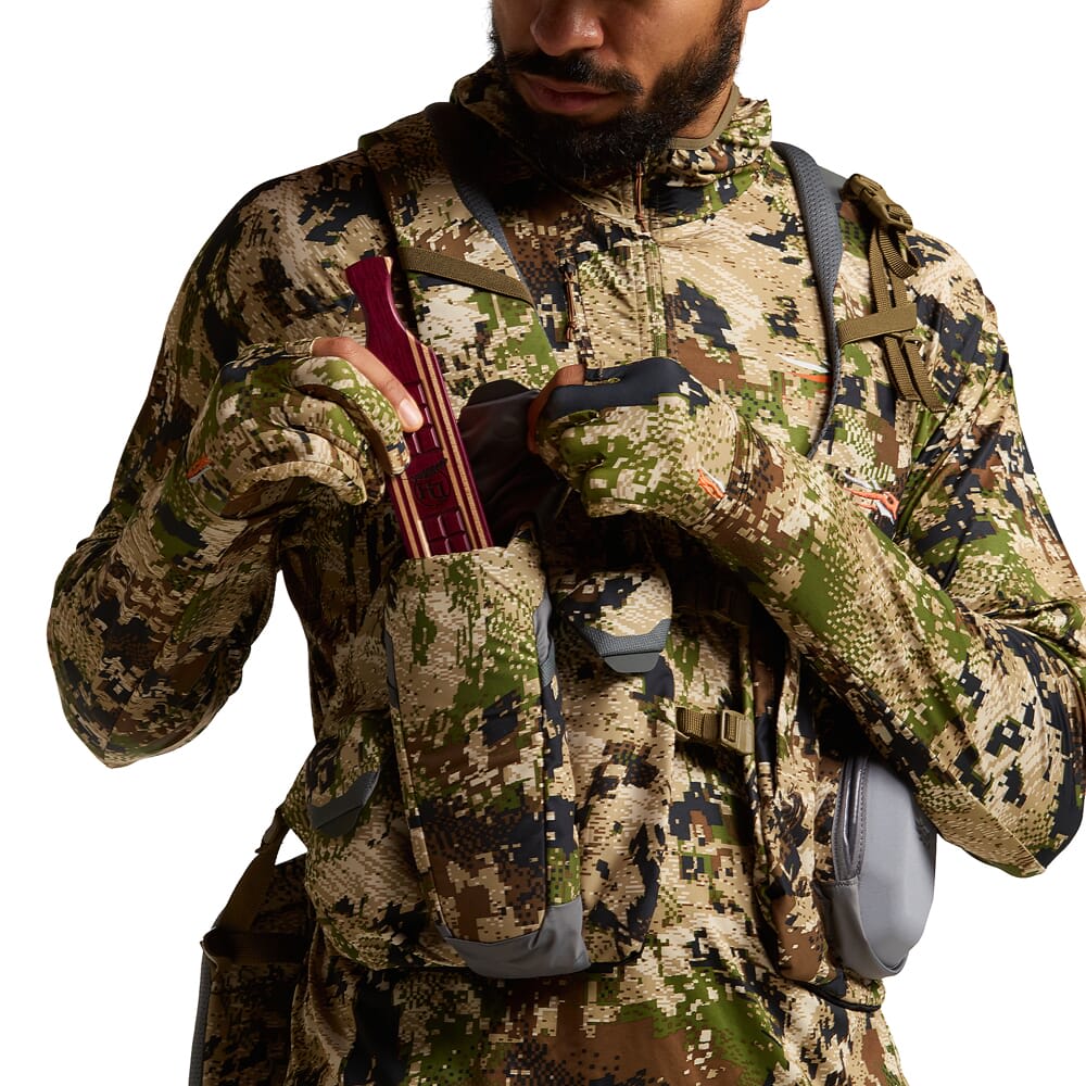 Sitka’s Equinox Turkey Vest was designed to provide comfort, ergonomics, and increased carrying capacity for run and gun style hunting. Despite its minimalist configuration, the Equinox Turkey Vest offers ample storage compartments for all your turkey hunting essentials including 2 dedicated pockets for holding 2 strikers each, a padded water-resistant clamshell style pocket with magnetic closures for keeping pot calls dry and secure, and a water-resistant box call pocket that holds the call snugly in place to reduce unwanted noise. This vest also offers internal mesh zippered pockets to store tags, a headlamp, a knife, and other accessories, a large zippered back pocket with a hydration compatible sleeve, and a removable turkey carrying system. The Equinox Turkey Vest is form fitting with its adjustable straps, and features a dual-intensity foam seat that easily deploys and cinches back in place and stays harnessed to prevent movement.