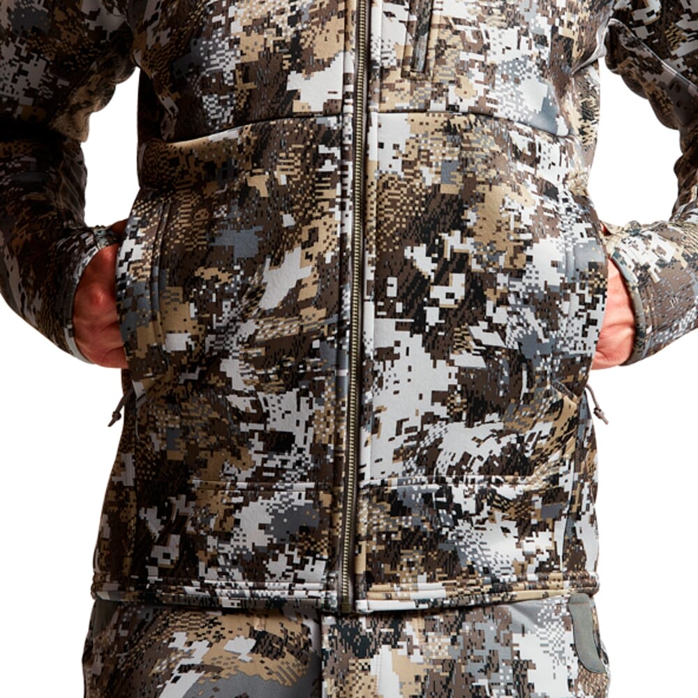 Sitka combines comfort, performance, and versatility with the Traverse Jacket. It can be worn as an outer-layer for warmer days, or be worn as a mid-layer with other pieces for when the temperature drops. The interior is equipped with a high-gauge Berber fleece lining for excellent warmth and an ultra-soft feel without adding any unnecessary weight or bulk. The Traverses Jacket’s exterior is composed of a polyester knit face that promotes quiet movement, and is equipped with a durable water repellent finish that resists light precipitation to help prevent the fabric from wetting out. The Traverse Jacket also features zippered hand and chest pockets for secure storage, and integrated thumb loops allow for easy layering. In addition, all of the Traverse Jacket’s textiles are made from recycled materials, and is available in a wide assortment of colors and camouflage patterns.