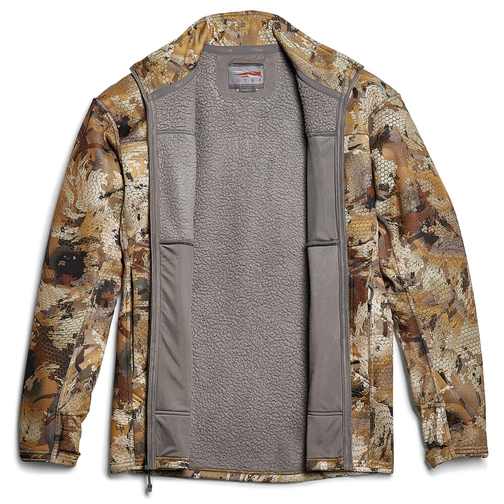 Sitka combines comfort, performance, and versatility with the Traverse Jacket. It can be worn as an outer-layer for warmer days, or be worn as a mid-layer with other pieces for when the temperature drops. The interior is equipped with a high-gauge Berber fleece lining for excellent warmth and an ultra-soft feel without adding any unnecessary weight or bulk. The Traverses Jacket’s exterior is composed of a polyester knit face that promotes quiet movement, and is equipped with a durable water repellent finish that resists light precipitation to help prevent the fabric from wetting out. The Traverse Jacket also features zippered hand and chest pockets for secure storage, and integrated thumb loops allow for easy layering. In addition, all of the Traverse Jacket’s textiles are made from recycled materials, and is available in a wide assortment of colors and camouflage patterns.