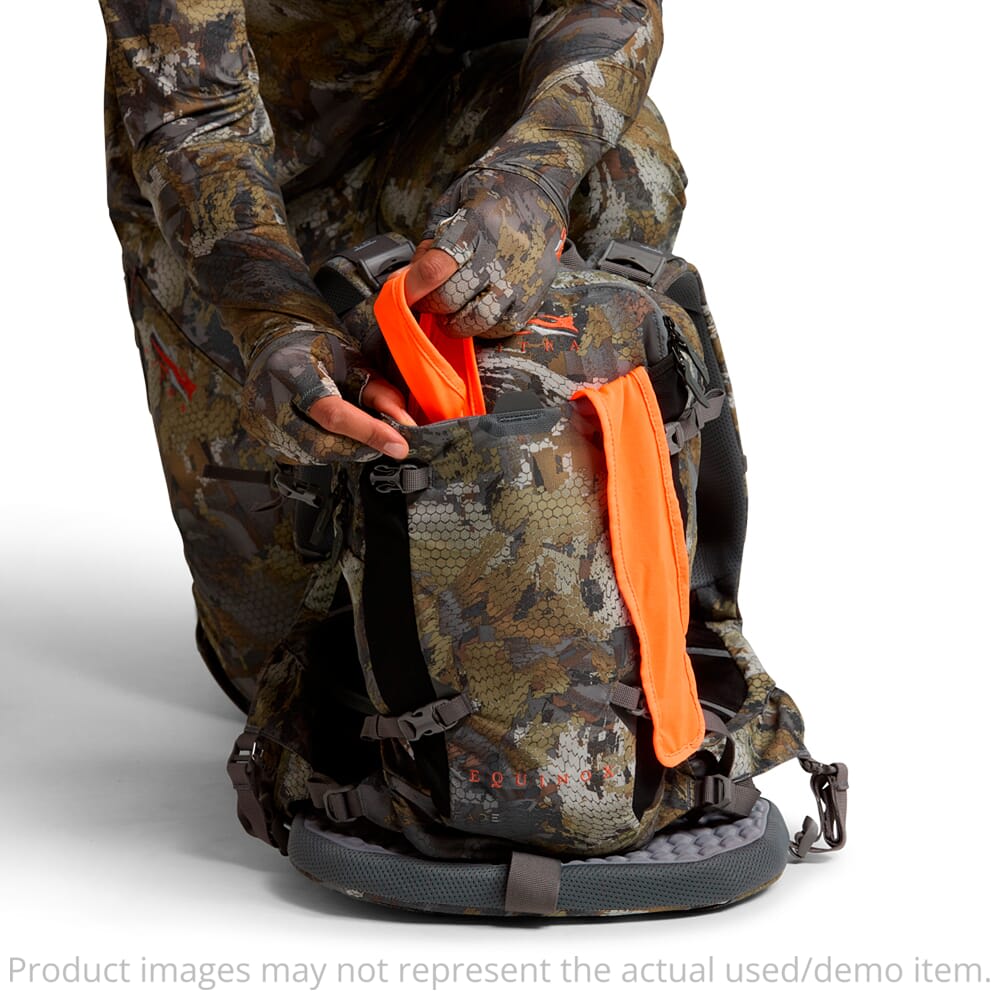 Sitka’s Equinox Turkey Vest was designed to provide comfort, ergonomics, and increased carrying capacity for run and gun style hunting. Despite its minimalist configuration, the Equinox Turkey Vest offers ample storage compartments for all your turkey hunting essentials including 2 dedicated pockets for holding 2 strikers each, a padded water-resistant clamshell style pocket with magnetic closures for keeping pot calls dry and secure, and a water-resistant box call pocket that holds the call snugly in place to reduce unwanted noise. This vest also offers internal mesh zippered pockets to store tags, a headlamp, a knife, and other accessories, a large zippered back pocket with a hydration compatible sleeve, and a removable turkey carrying system. The Equinox Turkey Vest is form fitting with its adjustable straps, and features a dual-intensity foam seat that easily deploys and cinches back in place and stays harnessed to prevent movement.
