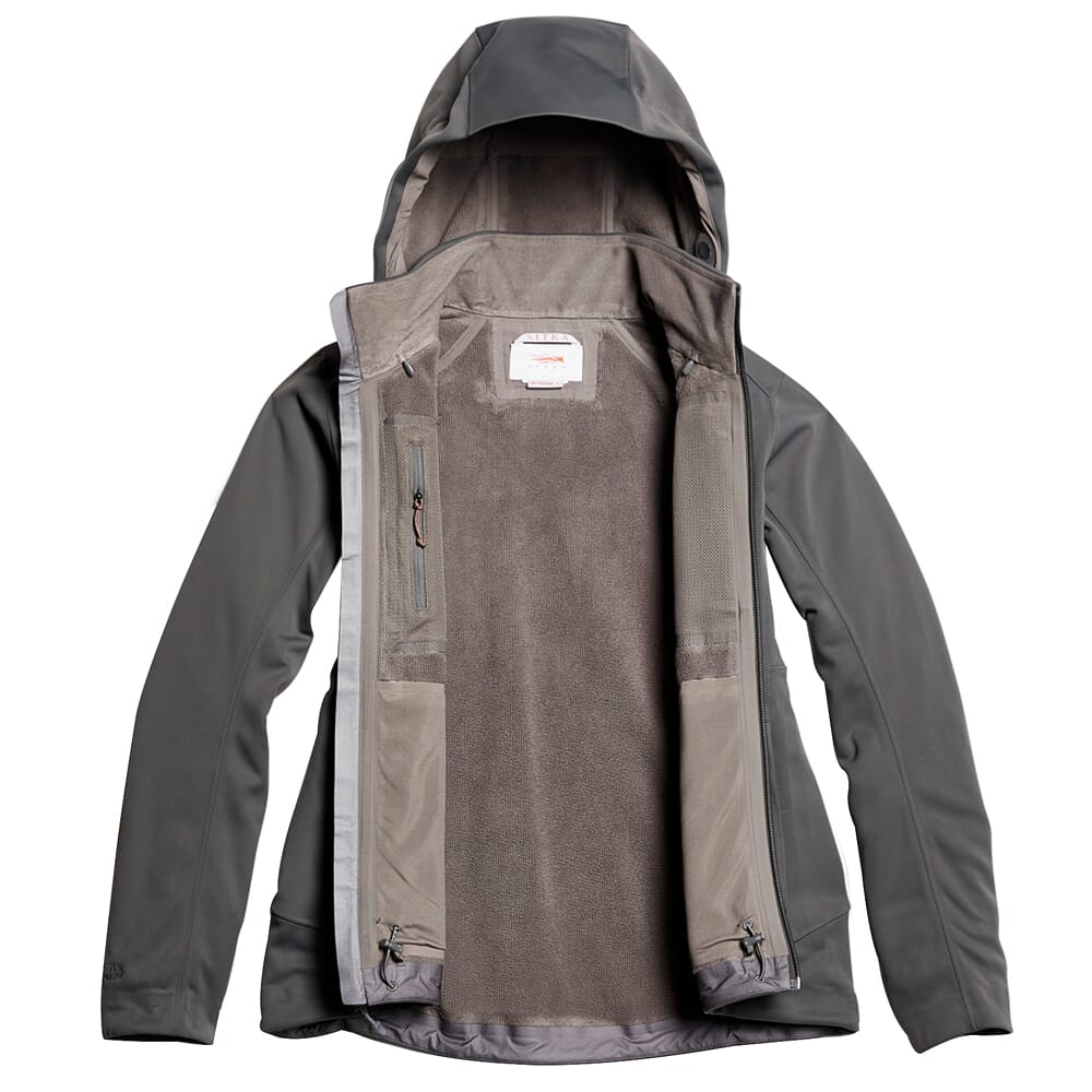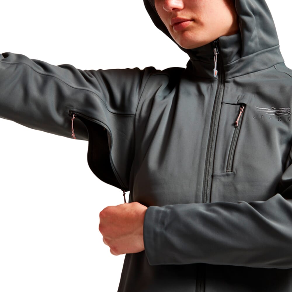 Sitka redefines soft shell jacket performance on active outdoor pursuits with the Jetstream Jacket! Available in a massive assortment of colors and camouflage patters, the Jetstream Jacket comes equipped with multiple Sitka exclusive features. The Jetstream Jacket is outfitted with GORE Windstopper technology, making it 100% impervious to wind, and a DWR finish allows the jacket to easily shed light rain and snow. This ability to withstand wind and light precipitation is perfectly complimented by the Jetstream Jacket’s taped and skived seams, which offer added weather protection without any unnecessary bulk. In addition to its wind and weather resistance, the Jetstream Jacket is designed for maximum comfort. The interior is made from recycled polyester fabric with polyester micro-grid fleece – this delivers excellent warmth, but also allows for breathability when needed, and zippered heat-dumps in the pit areas allows you to vent off excess heat while on the move. The Jetstream Jacket also utilizes articulated patterning to promote a full range of unrestricted movement, and zippered hand and chest pockets are included to store all of your essentials. The Jetstream Jacket’s ability to stop wind, shed light precipitation, breathability, and warmth makes it a perfect outer-layer for warmers days, or as a mid-layer for when temperatures drop.
