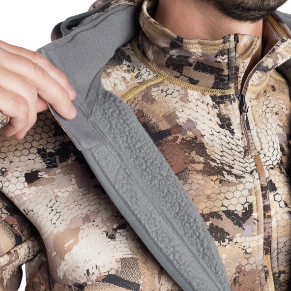 A smarter sweatshirt. The Sitka Gradient Hoody glides over base layers and under a shell to give you the comfort of your well-worn favorite with a few notable upgrades. The stealthy Optifade Timber pattern lets you wear it as an outer layer when setting decoys, and Berber high loft fleece adds insulation when the mercury bottoms out. The generous hood and built-in face mask offer additional protection from the elements.