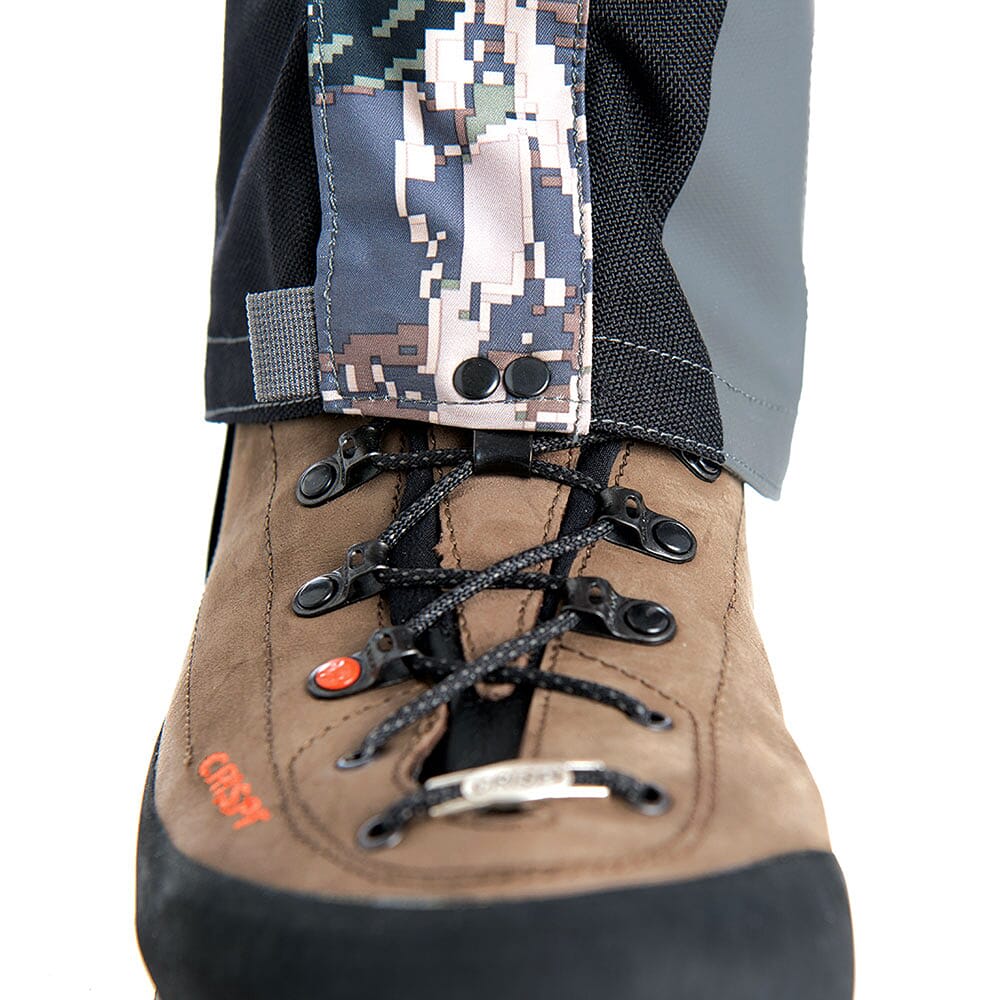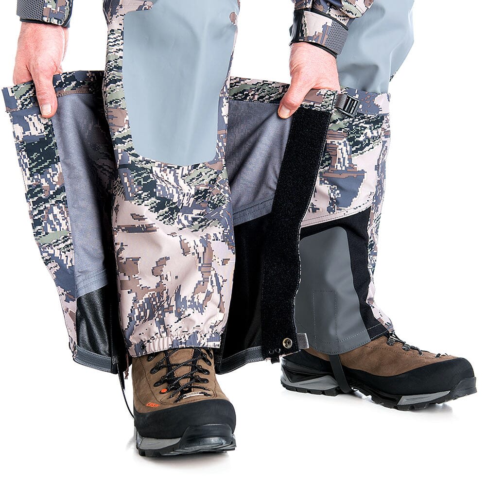 The updated Sitka Big Game Open Country Stormfront GTX Gaiter provides more durable, lightweight, over-the-calf protection for the most rugged environments. The 3-layer GORE-TEX and gripper elastic bottom maintain a tight seal to keep out water. A durable kick patch ensures a long service life and internal ladder lock strap system keeps a low profile to reduce abrasion and noise when navigating technical terrain.