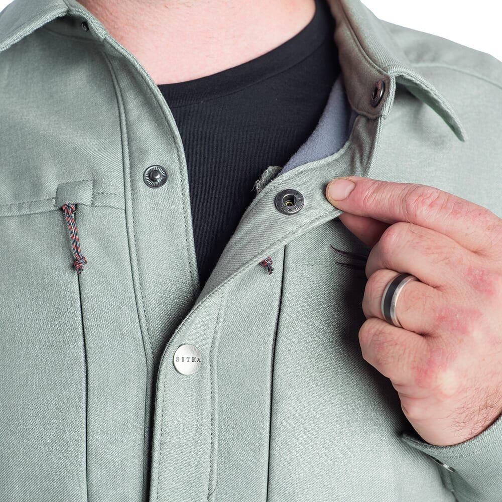Sitka's Highland Overshirt offers a unique blend of lightweight comfort and enhanced weather resistance. Whether you find yourself immersed in a long day of labor, transporting firewood, or tackling game butchering tasks in the shed, this robust overshirt is built to endure the test of time. Its thoughtful design features include concealed zip-secured chest pockets for secure storage, a trusty metal snap front closure, convenient slash hand-warmer pockets, and generously sized storage pockets. To top it all off, the overshirt boasts a durable water-repellent finish, ensuring that you stay dry in less-than-ideal conditions. With a 100% polyester face and interior, the Sitka Highland Overshirt is the ultimate choice for those seeking a versatile, durable, and weather-resistant addition to their outdoor wardrobe.