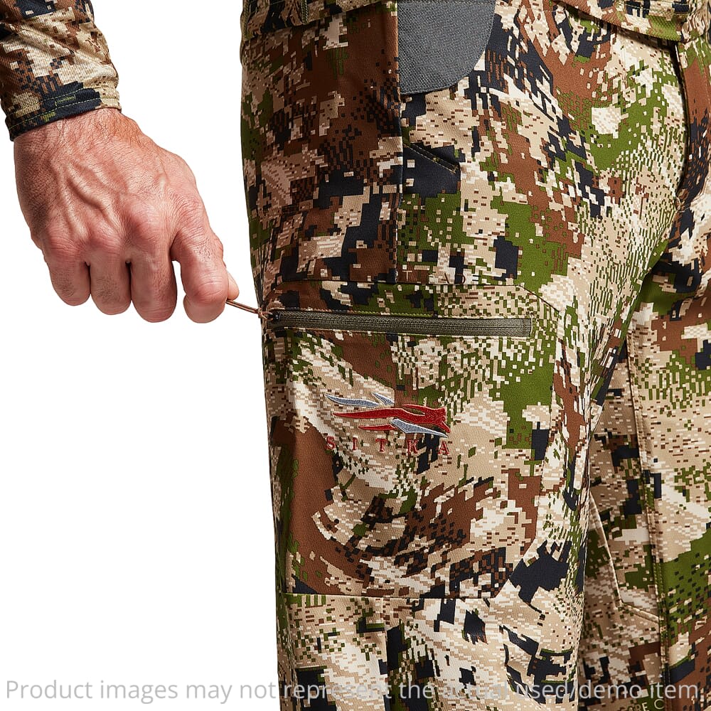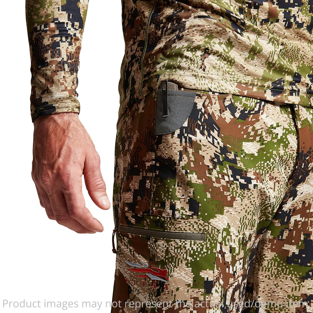 Sitka’s Traverse Pants deliver comfort and versatility in a streamlined package. Like the other high performance apparel in the Traverse line, the textiles used in the Traverse Pants are made from eco-friendly recycled material. To promote a full range of unrestricted movement, the Traverse Pants utilize 4-way stretch woven fabric (90% recycled polyester, 10% spandex) allowing for greater mobility in unforgiving terrain. The exterior is outfitted with a water repellent material that sheds light precipitation, and is also designed to cut down of noise while moving to avoid spooking game. In addition, the Traverse Pants has low profile cargo pockets for carrying your essentials, and features hidden suspender attachment points.
