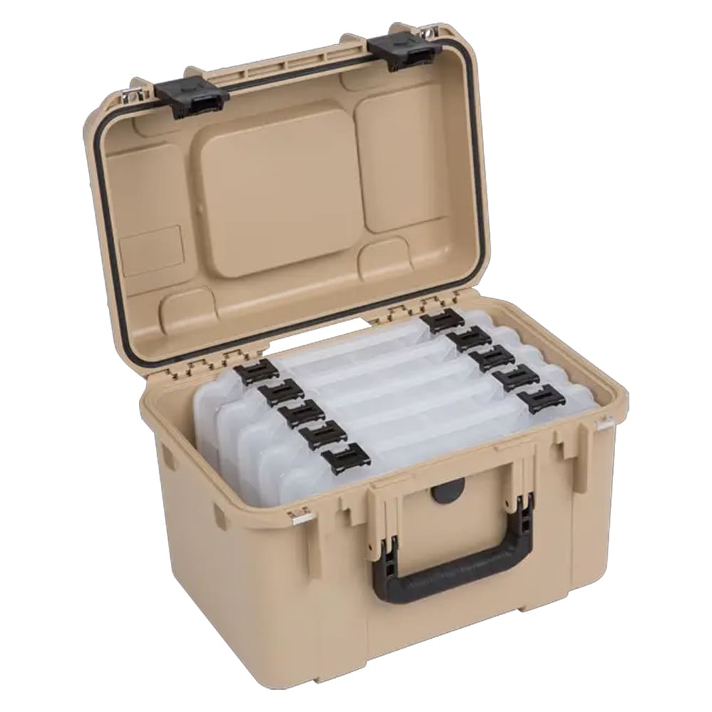 The SKB iSeries Tackle Box is the ultimate solution for anglers seeking durability and organization in one sleek package. Crafted for the outdoors, this tackle box is built to withstand the elements, featuring a water-resistant and impact-resistant construction. Its customizable interior, complete with adjustable dividers, allows for a tailored storage solution to fit your specific needs, ensuring your tackle is always organized and ready for action. Despite its robust construction, the iSeries Tackle Box is compact and portable, making it easy to transport and store. Its stylish tan color adds a professional touch, making it a must-have for any serious angler.