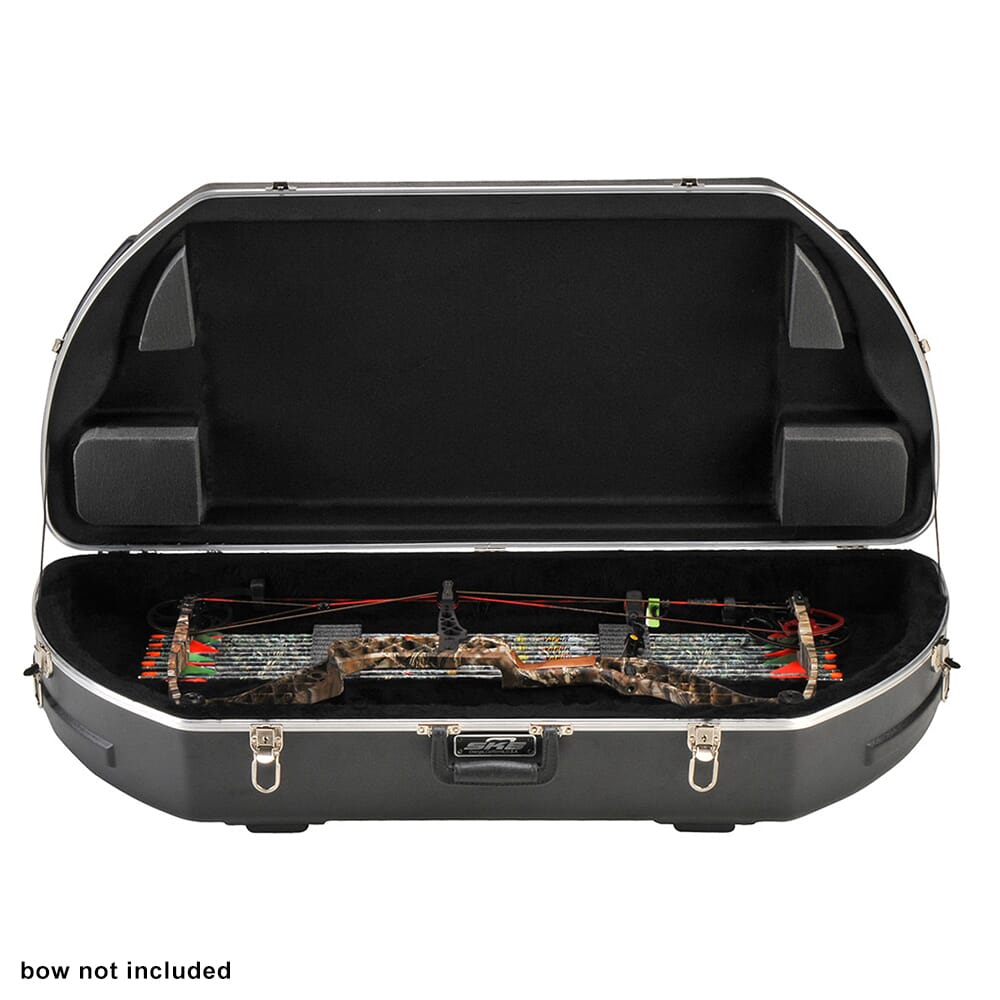 The SKB Mathews Hunter Series Bow Case Black 2SKB-4117M is a premium case designed to accommodate most of the best-selling bows on the market, including Mathews models. The rigid ABS shell features stylish embossing that adds structural support and an eight-point interlocking stacking system. The interior is lined with plush EPS inserts for maximum impact resistance and includes a water-jet cut polyethylene foam arrow system that holds up to a dozen arrows. Lockable draw-bolt metal latches and a comfortable carrying handle ensure secure and easy transport. This case offers exceptional protection and durability for your bow.
