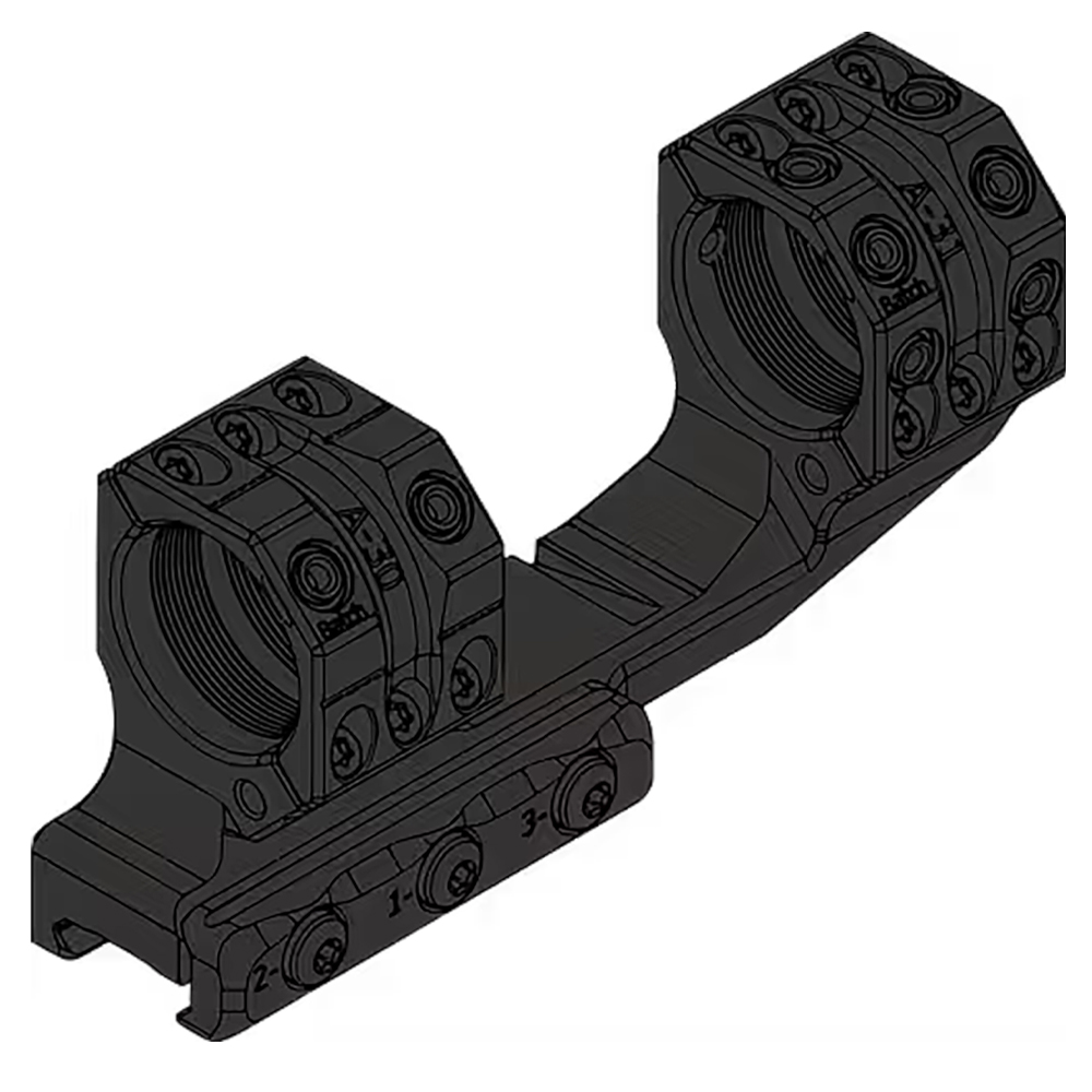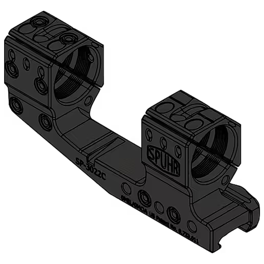 The Spuhr Steel Side Clamp Picatinny Cantilever Scope Mount 30mm H38mm/1.5" 0MIL/0MOA PIC Gen3 SP-3022CM is engineered for shooters who need extended mounting options without additional elevation adjustments. This cantilever mount allows the scope to be positioned further forward, enhancing eye relief and overall shooting comfort. Constructed from high-quality steel, it offers exceptional durability and stability. The Gen3 design features improved alignment grooves and a streamlined profile, making it both functional and aesthetically pleasing