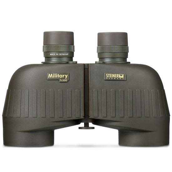 The Steiner Military M50r 7x50 binoculars are built for all conditions to extreme darkness to blistering sun, freezing cold to desert heart. These binoculars feature an integrated compass, mid-90% light transmission, floating prism system, multi-coated optics, Sports-Auto Focus system, N2 injection system, cylindrical eyecups, NBR Rubber Armoring, Makrolon housing, and a ranging reticle.
