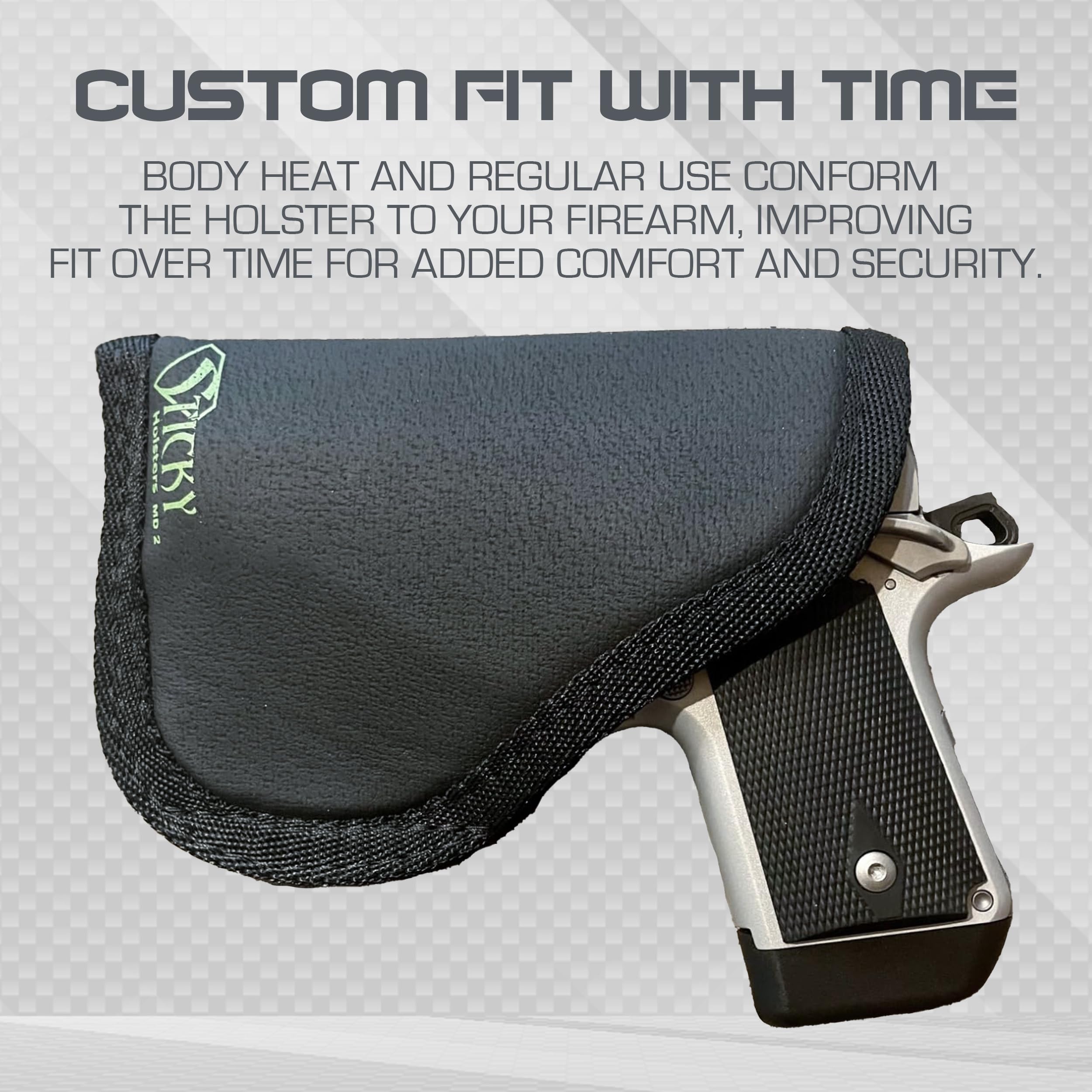 Introducing the Sticky Holsters Medium IWB/Pkt & Ambi Holster - the ultimate solution for discreet and secure firearm carry. Designed for the modern firearm enthusiast, this holster is compatible with 9mm and 40S&W handguns with barrels up to 3.3 inches, making it the perfect fit for popular models like the S&W Shield/Plus, Ruger LC9/LC380, and Taurus 709. Its ambidextrous design offers versatile carry options, allowing for both left and right-handed use, and the sticky material ensures your firearm is securely retained, providing peace of mind and reliability. The medium size is ideal for both inside-the-waistband and pocket carry, making it a versatile choice for everyday use. Whether you're a seasoned firearm owner or a newcomer, this holster offers the perfect blend of comfort, security, and accessibility, making it a must-have for your carry needs.