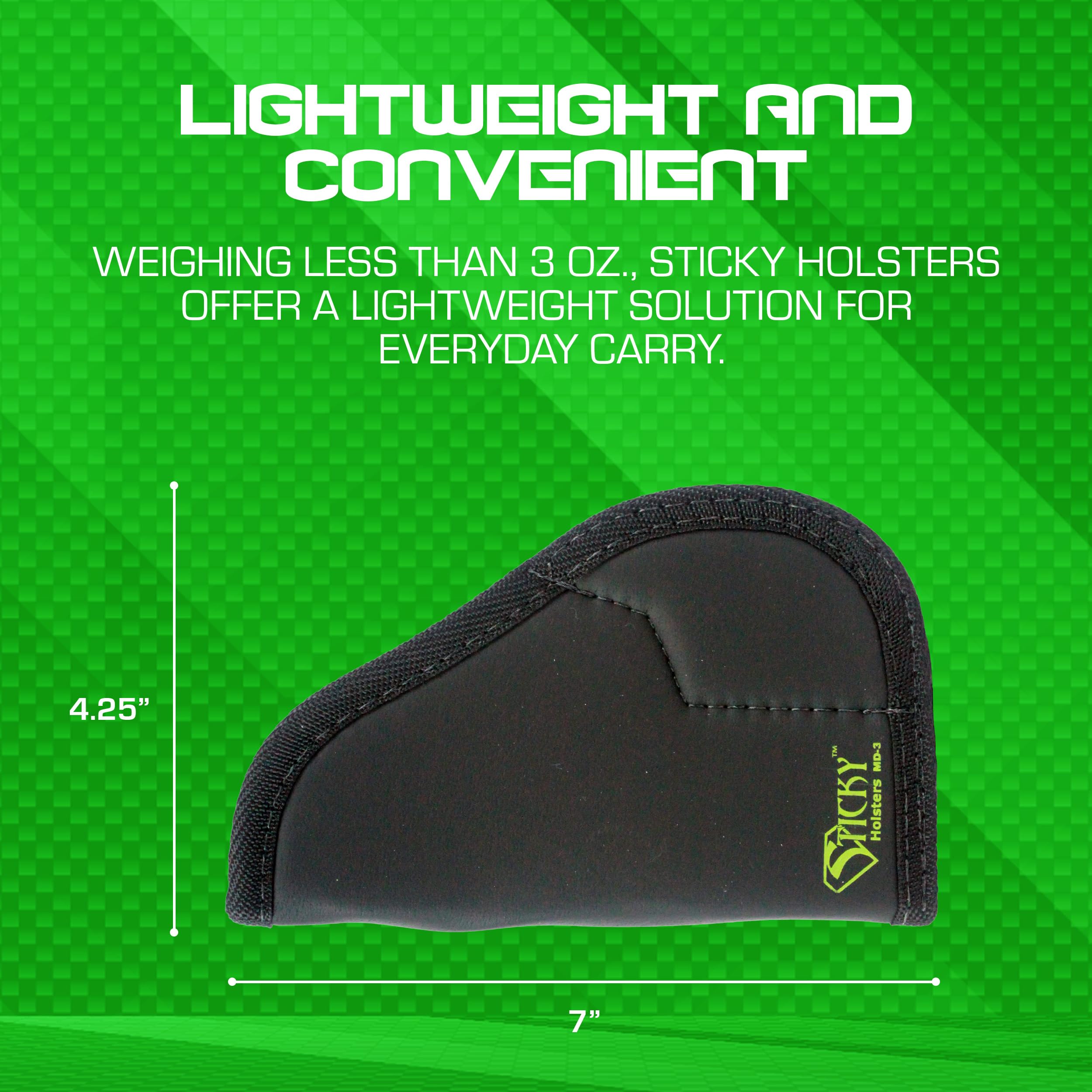 Introducing the Sticky Holsters Medium IWB/Pkt & Ambi Holster, the ultimate solution for discreet and secure handgun carry. Designed for compatibility with 9mm and 40S&W handguns with barrel lengths up to 3.3 inches, this holster is the perfect fit for popular models like the S&W Shield, Ruger LC9/LC380, and Taurus 709, even with light or laser attachments. Its medium IWB and pocket holster design offers versatile carry options, allowing you to choose the most comfortable and convenient way to carry your firearm. The holster is crafted with a unique sticky material that ensures secure retention, preventing any shifting or movement, even during the most active situations. Its ambidextrous design caters to both right and left-handed users, making it a versatile choice for any handgun owner. Experience the perfect blend of functionality and comfort with the Sticky Holsters Medium IWB/Pkt & Ambi Holster, and carry with confidence.