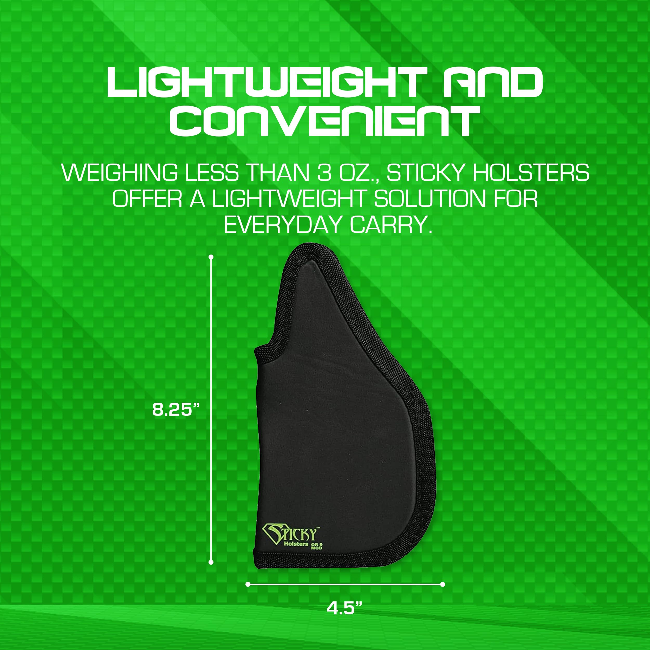 Introducing the Sticky Holsters Optics Ready Holster OR-9, the ultimate solution for firearm enthusiasts seeking a reliable, comfortable, and versatile holster for their handguns. Designed for a wide range of popular firearm models, this holster ensures a perfect fit for Glock, HK, S&W, Sig, and Walther handguns. Its innovative sticky exterior ensures a secure and reliable retention, providing peace of mind and quick access when you need it the most. The optics-ready design allows for a seamless and quick draw, making it perfect for those who need their firearm at the ready. Its lightweight and flexible construction ensures comfortable everyday carry, while the durable construction guarantees long-lasting use and protection. Whether you're at the range, on duty, or carrying for personal protection, the Sticky Holsters Optics Ready Holster OR-9 is the perfect companion for your firearm.