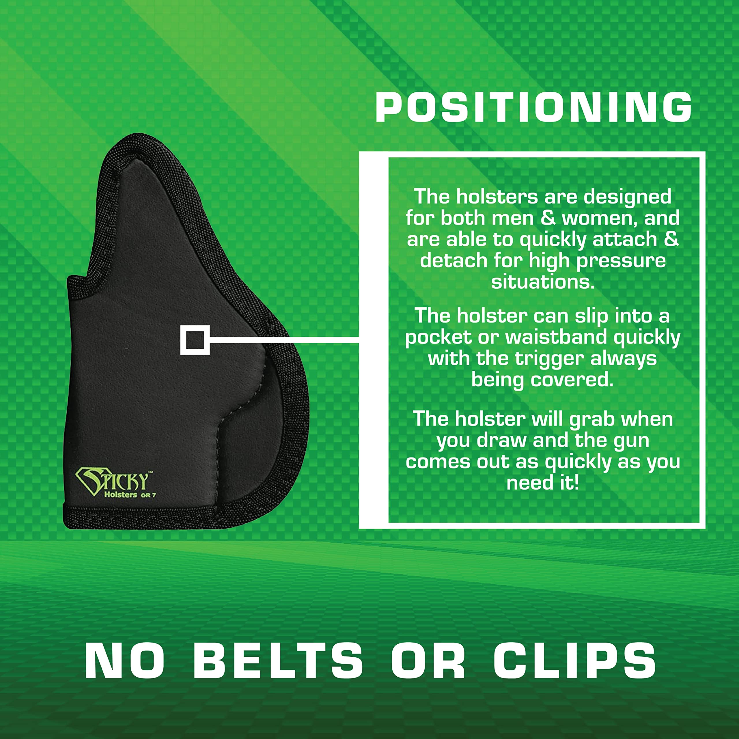 Introducing the Sticky Holsters Optics Ready OR-5 Mod - the ultimate solution for firearm enthusiasts seeking versatility, comfort, and security. This holster is meticulously designed for the discerning gun owner, offering an Optics Ready design that accommodates popular models like the Glock 42/43(X)/26/27, Ruger Max9, and S&W Shield Plus/X, even with light or laser attachments. Whether you're a right or left-handed shooter, the ambidextrous design ensures a seamless and comfortable carry experience. The OR-5 Mod is crafted with the innovative Sticky Holster technology, providing a secure and reliable retention system that keeps your firearm firmly in place, offering peace of mind in any situation. Its lightweight and compact design is perfect for inside-the-waistband (IWB) or pocket carry, making it an ideal choice for everyday use. Constructed with high-quality, durable materials, this holster promises long-lasting performance and reliable protection for your firearm, making it a must-have for any gun owner seeking a blend of functionality and comfort.