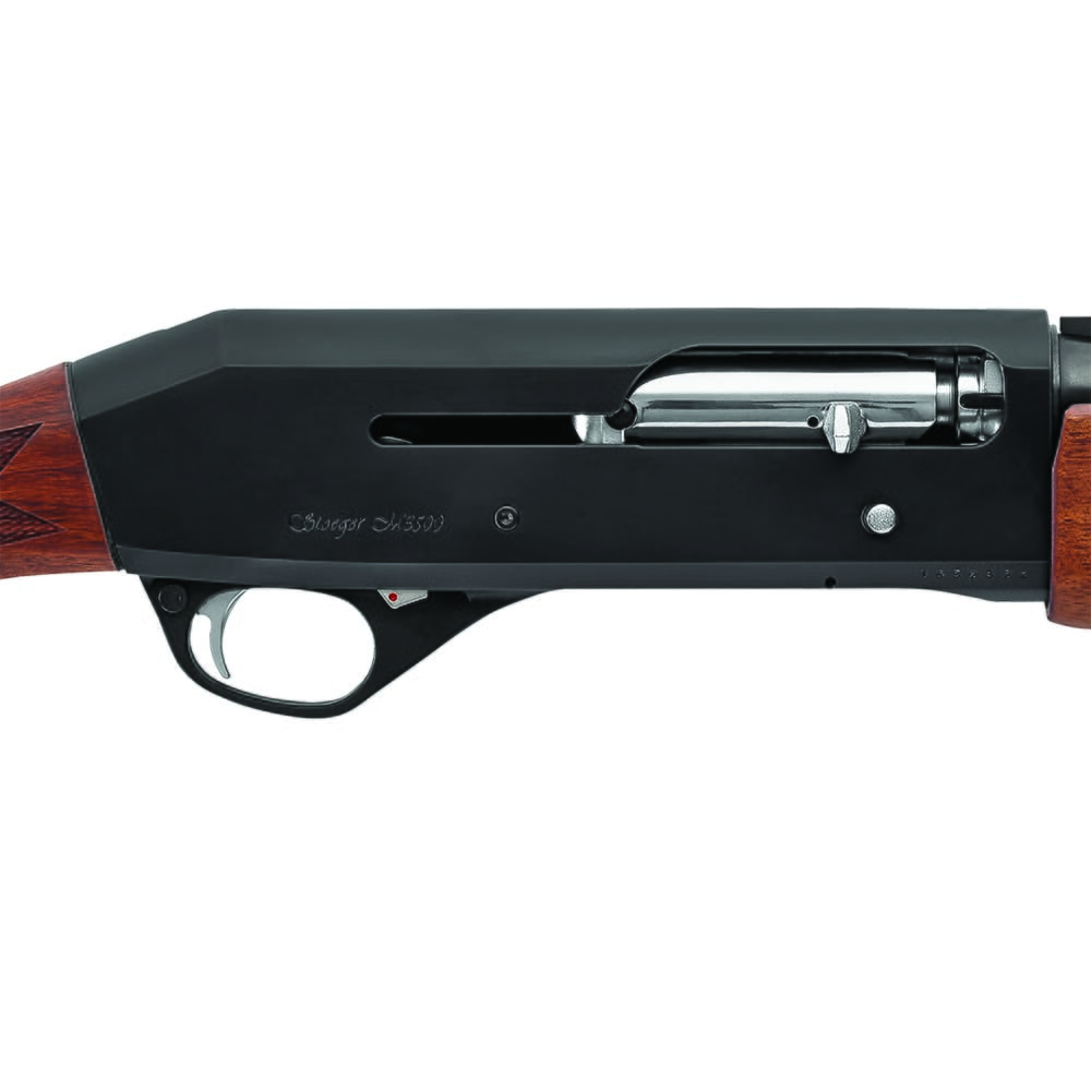Stoger’s M3500 series of shotguns delivers quality and performance at an unbeatable price. These ultra-reliable semiautomatic shotguns are equipped with Stoger’s proven Inertia Driven System – a simple yet reliable action that differs from gas-operated semiautomatics. The Inertia Driven System is composed of just 3 moving parts and eliminates the need for gas cylinders, O-Rings, and other complicated parts. Instead of using gas expansion, the Inertia Driven System uses recoil to cycle shells. This allows the M3500 to handle a massive assortment of different loads from light 2 ¾” cartridges to 3 ½” magnum shells. The Inertia Driven System also keeps the action cleaner since all the gas and burnt powder are expelled through the barrel. Other features include a drilled and tapped receiver for installing Weaver 93 style optics bases, and an included shim kit allows the shotgun to be adjusted to a perfect fit. In addition, the M3500 comes standard with an integrated recoil reducer in the stock, and a high visibility fiber optic sight promotes greater accuracy in low light conditions.