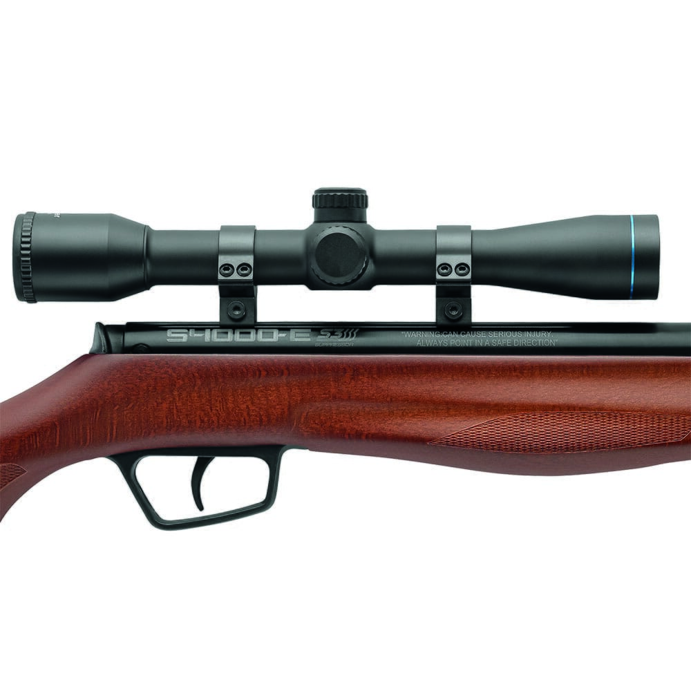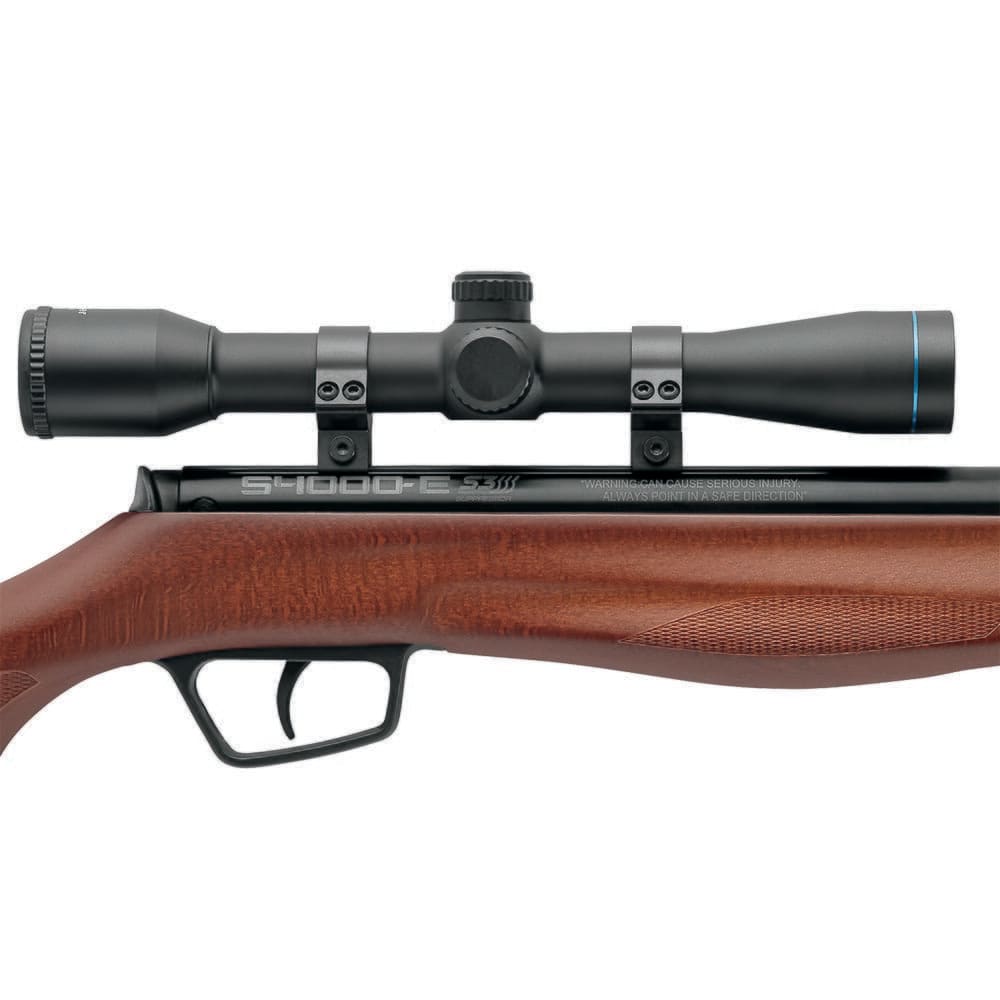 Stoeger’s commitment to excellence has led them to create S4000-E, a powerful, quick-shooting, and silent air rifle with a wide range of customization options to choose from. The heart of the S4000-E is its break action gas ramp system. This unconventional system uses compressed gas to cock the firing mechanism instead of the metal spring found on many other break action air guns. This gas ramp cocking system helps reduce the overall weight and fires alloy pellets at velocities up to 1200 feet per second, rivaling that of a .22 long rifle. The S4000-E also utilizes an S3 integral suppressor, giving the rifle a whisper-quiet report and can provide additional grip while cocking.