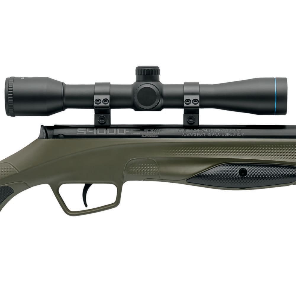 Stoeger’s commitment to excellence has led them to create S4000-E, a powerful, quick-shooting, and silent air rifle with a wide range of customization options to choose from. The heart of the S4000-E is its break action gas ramp system. This unconventional system uses compressed gas to cock the firing mechanism instead of the metal spring found on many other break action air guns. This gas ramp cocking system helps reduce the overall weight and fires alloy pellets at velocities up to 1200 feet per second, rivaling that of a .22 long rifle. The S4000-E also utilizes an S3 integral suppressor, giving the rifle a whisper-quiet report and can provide additional grip while cocking.