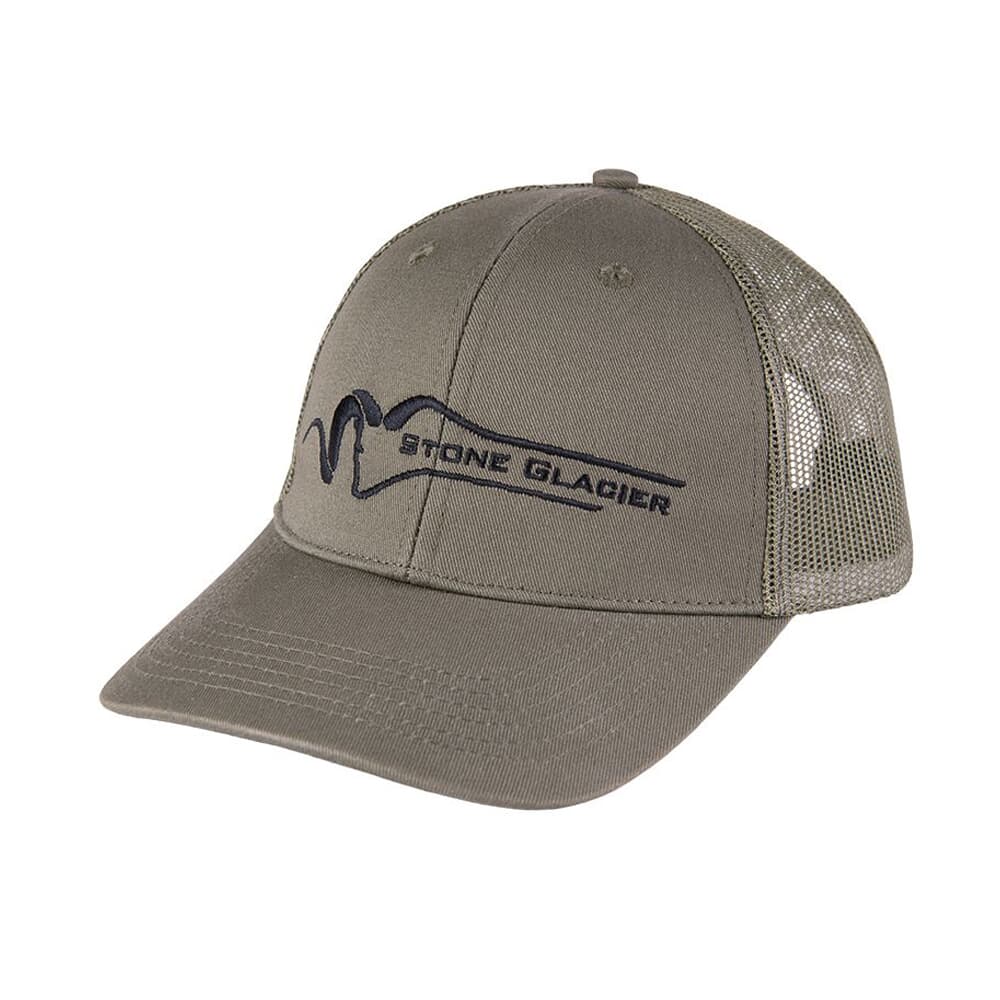A tried-and-true trucker boasting a low-profile fit and curved brim option with our classic Stone Glacier logo. 50% cotton / 50% polyester with a classic snap back.