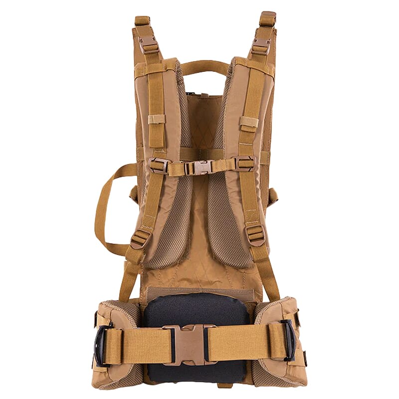 Stone Glacier's R3 Frame is the robust backbone of the Stone Glacier R3 military pack series. Weighing a mere 2 pounds 14 ounces with a medium belt, shoulder straps, and load shelf, this redesigned frame for 2022 is a lightweight powerhouse capable of effortlessly hauling 150+ pounds. Its enhanced features include an integrated and adjustable rifle carry system, a convenient side-carry handle, a straight frame design ideal for plate carrier wearers, and color-coded buckles for swift R3 Bag connection/disconnection. Elevate your gear-carrying experience with the versatility and strength of the R3 Frame.