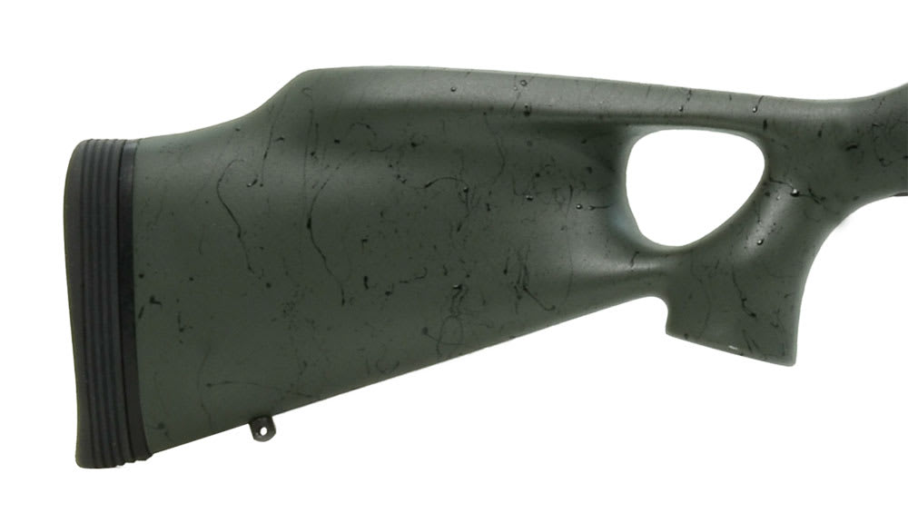 This 6.5 Creedmoor Christensen Arms Summit CF rifle features a green Tier 1 glass bedded stock with black webbing, 24" carbon wrapped barrel, titanium muzzle brake, soft case, match trigger, removable drop mag box, mini M16 style extractor, and integral picatinny rail.