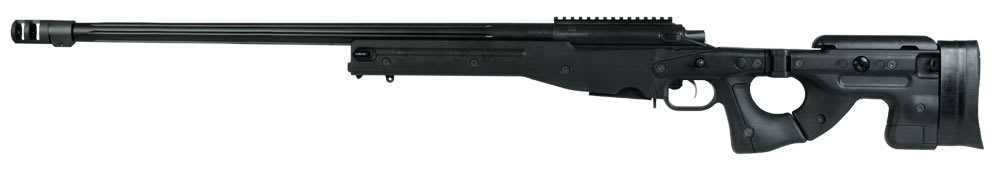 This Surgeon Scalpel 7 WSM rifle features an AI folding stock, black ceracote finish, jewell trigger, 2-position trigger safety, 26" fluted barrel, picatinny rail, Badger FTE brake, and integral recoil lug.