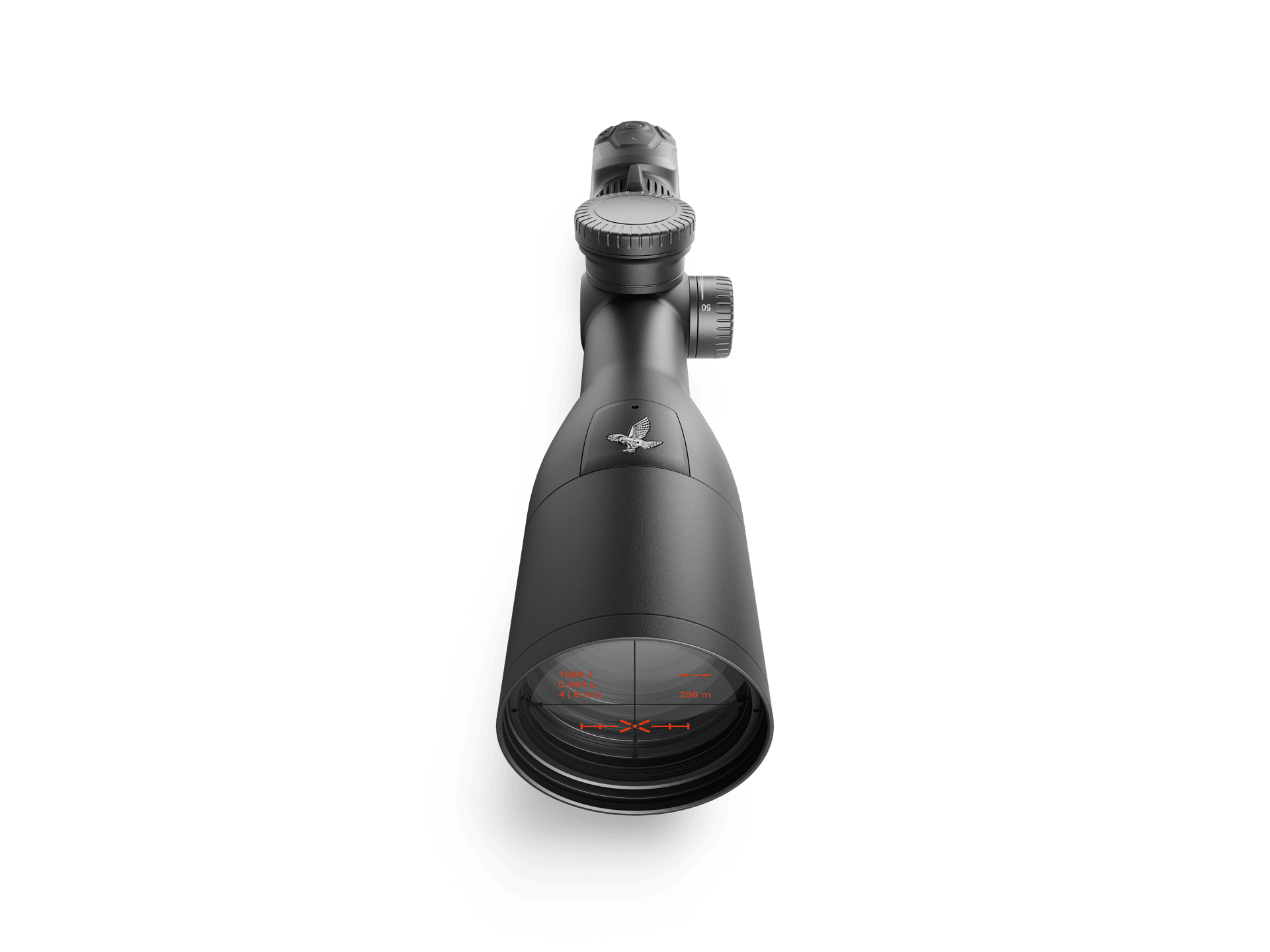 Swarovski Optik’s dS 5-25x52 P Gen II represents a major advancement in riflescope technology. In terms of performance, this precision optical instrument is far more than just a standard riflescope. To ensure the most accurate possible shot, the dS 5-25x52 comes equipped with a series of integrated technologies including an onboard laser rangefinder, an illuminated holdover reticle display, a cant indicator, and sensors to measure air pressure, temperature, and bullet flight time. In addition, the dS Configurator app allows the user to create a custom ballistics profile based on their specific firearm and ammunition preference, then connects to the dS 5-25x52 riflescope via Bluetooth connection. The app and riflescope take into account the set magnification, air pressure, temperature, angle and your own ballistics profile to calculate the exact aiming point. This aiming point is then displayed as an illuminated reticle holdover point with six reticles to choose from. This function can also display the maximum range at the highest magnification based on the currently selected ammunition type.