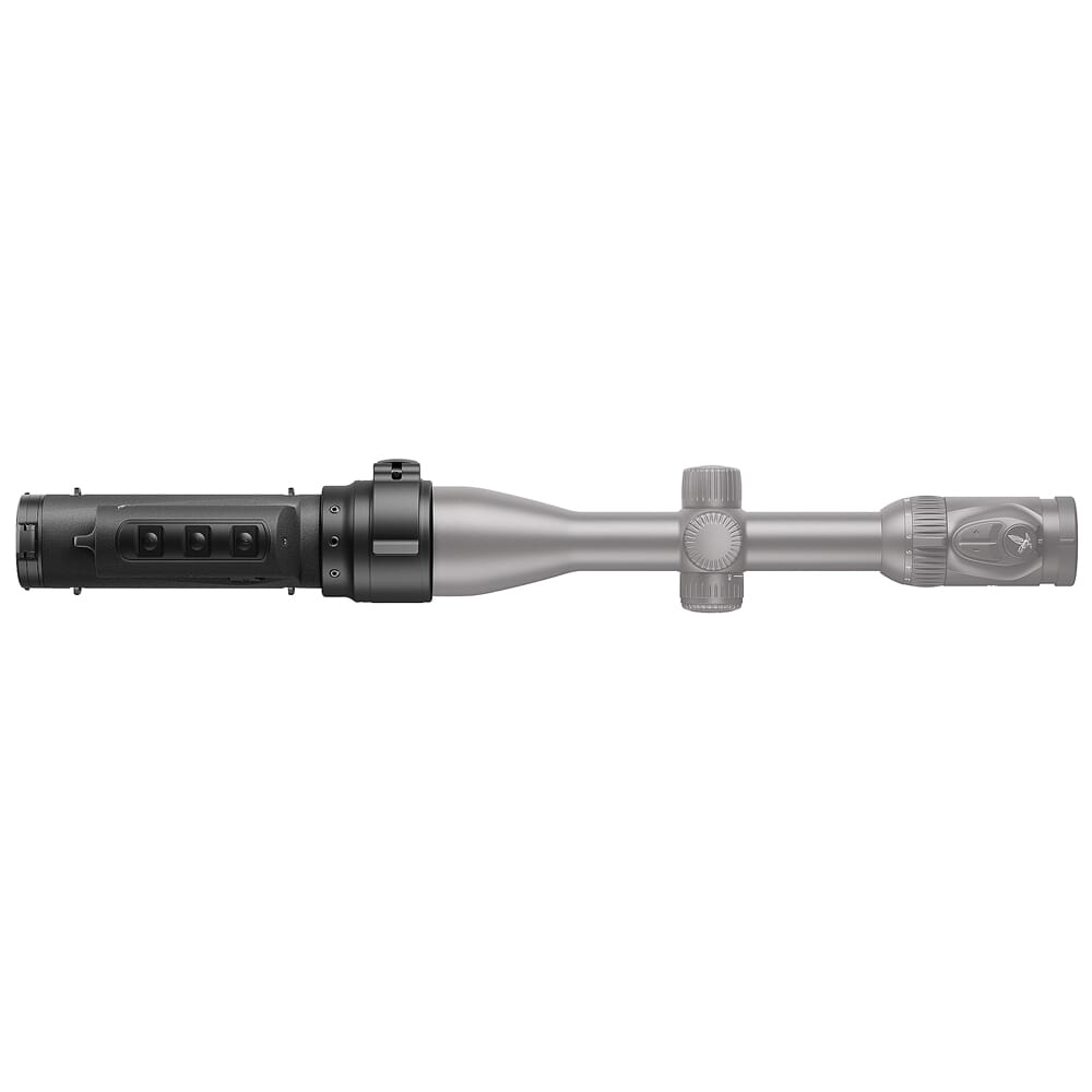 Own the night with the tM 35 Thermal Imaging Clip-On Device by Swarovski! Unlike night vision devices that require a level of ambient light, the tM 35 can operate in complete darkness as it detects heat signatures rather than light amplification. The tM 35 displays these heat signatures in 2 modes: white hot and black hot. White hot displays sources of heat as white over a predominantly black background white black hot displays sources of heat as black over a predominantly white background. Toggling between the 2 modes can be useful for identifying more details. The tM 35 is outfitted with Swarovski’s exclusive Swarolight, this function preserves battery life by activating the device when the user takes aim and shoots, then deactivates it when the user puts the firearm down. An automatic brightness adjustment is included to adapt the display brightness to the surrounding lighting conditions, but display brightness can also be changed manually by pressing +/-. In addition, the tM 35 can rapidly be deployed: after a single press of the on/off button, the device will be ready to use in a mere 3 seconds.