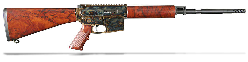 The Turnull Tar 15 is a one of a kind. With new wood grained plastic stock and pistol grip, this rifle has a 16" barrel and fits a .223 caliber. The barrel is chrome lined in both bore and chamber to provide Turnbull accuracy, durability, and maintenance ease.