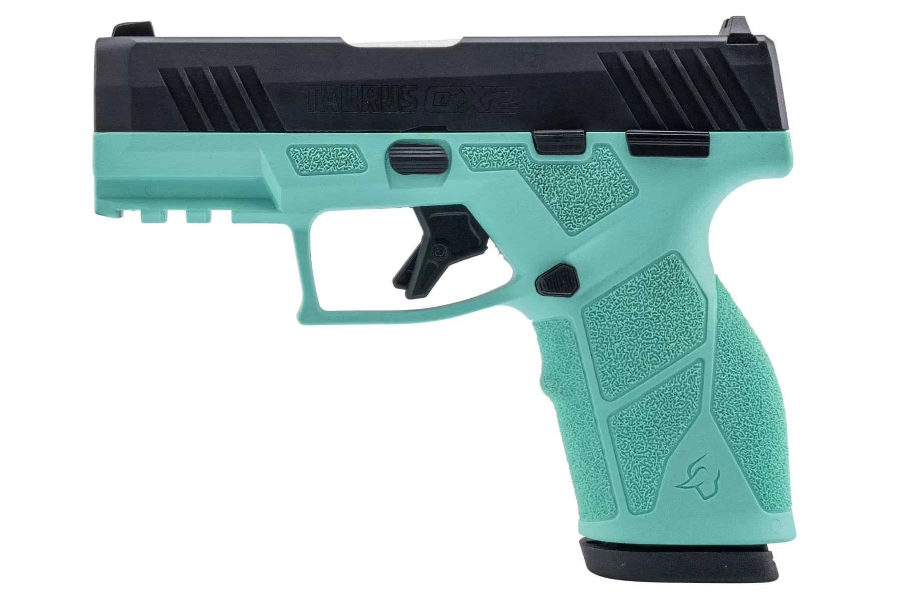 The Taurus GX2 9mm Pistol is a compact powerhouse designed for those who value precision and style in a firearm. With a 3.38-inch barrel, this pistol is engineered for enhanced maneuverability, making it an ideal choice for both personal defense and recreational shooting. Its compact size and lightweight design ensure it is easy to handle, whether you're a novice or an experienced shooter. The GX2 is not just about performance; it also boasts a striking Cerakote finish in a vibrant cyan and black, ensuring it stands out in both style and durability. The pistol comes equipped with two 10-round magazines, providing ample shooting capacity for any situation. With a smooth trigger pull, the GX2 offers reliable performance and improved accuracy, making it a trusted companion for any shooting enthusiast.