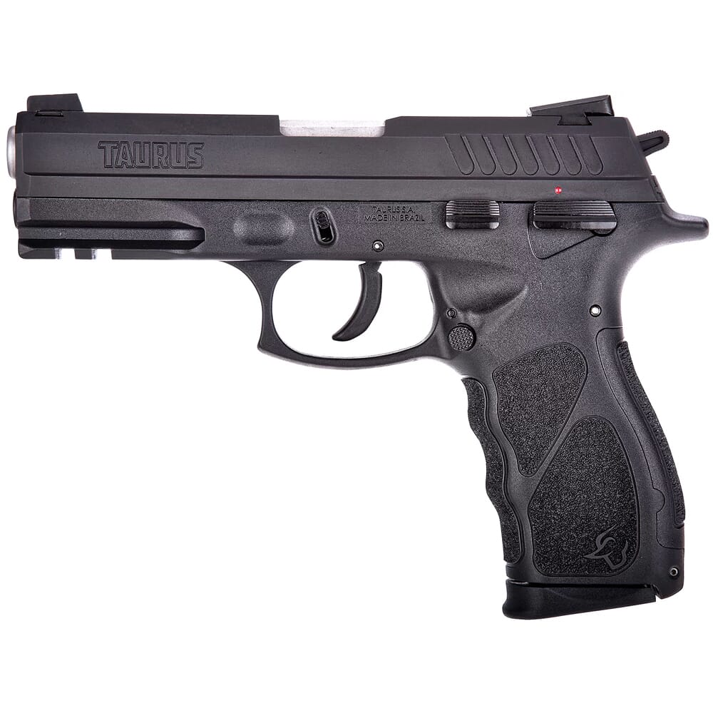 The Taurus TH9 delivers excellent performance and reliability and an unbeatable price. This full-sized DA/SA semiauto handgun’s grip was designed with a large emphasis on ergonomics: it features aggressive texturing in key areas, finger grooves, and a recessed area for proper thumb placement. Together, these features provide a comfortable shooting experience, and interchangeable backstraps allows the TH9’s grip to conform to virtually any hand size. The both the TH9’s front and rear sights are Novak drift adjustable for fine-tuning accuracy, and the frame mounted accessory rail allows the weapon to be customized with a tactical light/laser. In addition, the TH9’s safety, magazine release, and slide release are all ambidextrous to accommodate both left and right handed shooters.