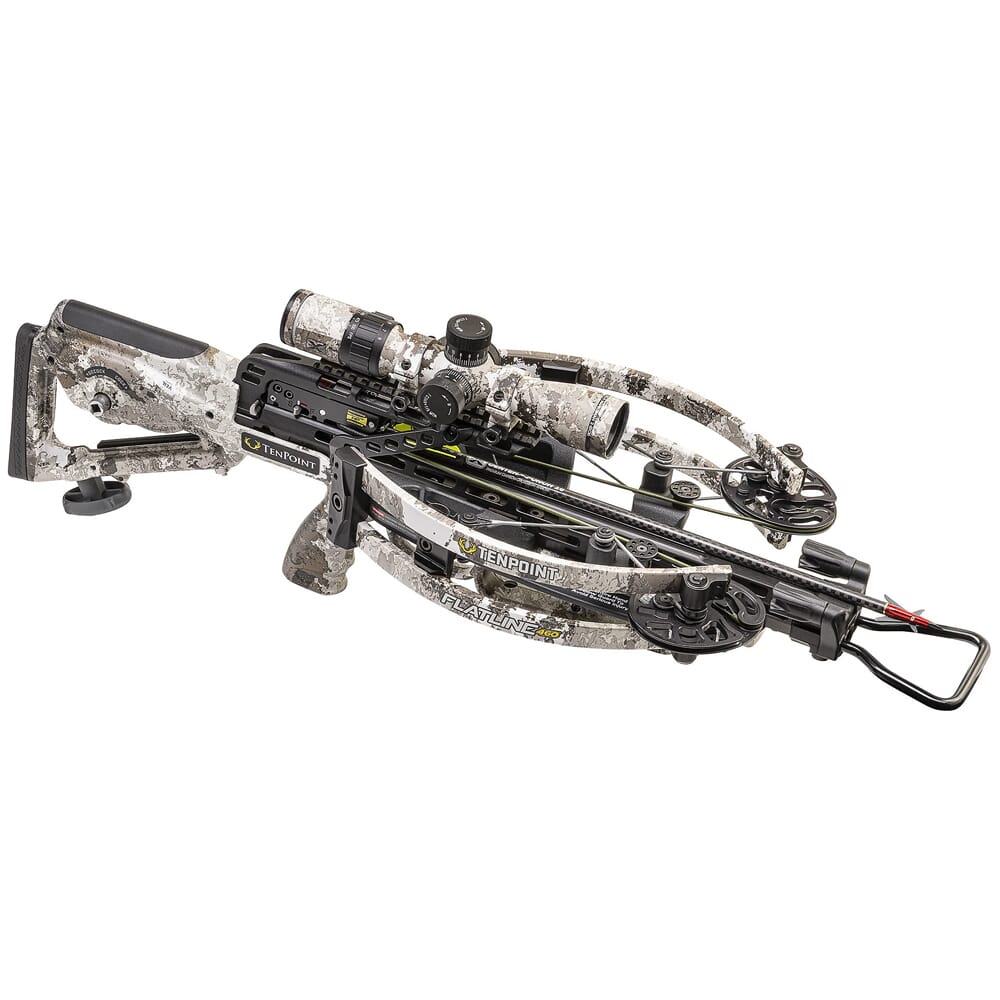 This Flatline 460 is equipped with a EVO-X Elite Crossbow Scope for greater long range accuracy. The scope mounts to the Flatline 460 with newly designed Scope Struts that increase strength by 80% to ensure a solid interface between the optic and crossbow for “bulletproof” in-the-field durability. The optic-mounting dovetail’s length has also been increased, accommodating a wider range of optics and optic adjustment options. Other features of the Flatline 460 include the innovative ACUslide cocking/de-cocking mechanism. This system allows the shooter to silently cock/un-cock the crossbow by cranking the ACUslide’s handle, and the entire process can be paused at any time. In addition, the Flatline 460 is equipped with the S1 Trigger, a 2-stage zero-creep design with a roller sear system that provides a crisp, consistent 3.5 lb pull