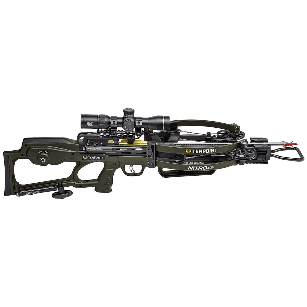 TenPoint’s Nitro 505 combines an array of proprietary features to deliver unmatched performance! It utilizes a reverse-draw design to create an industry-leading power stroke of 17-inchs. This configuration sends bolts downrange at over 500 feet per second, as well as providing a smoother, quieter shot. Other benefits of the reverse-draw design include an additional 4-inches of string-to-nock engagement for greater accuracy, and completely eliminates the nose heavy feeling of traditional crossbows. The reverse-draw design is complimented by the RX8-cam system, which rotate to 404-degrees, and feature deeper cable grooves for improved cable spacing and an increased strand count to provide added strength and durability. To make cocking the crossbow easy, the Nitro 505 is equipped with the exclusive ACUslide cocking system. This allows the shooter to cock the crossbow with a mere 5 pounds of force, and can be used to de-cock the crossbow by backwinding the handle. For enhanced trigger control, the Nitro 505 comes standard with TenPoint’s S1 trigger. The S1 utilizes an advanced roller-sear system for a consistent, 2-stage pull of 3.5 lbs.