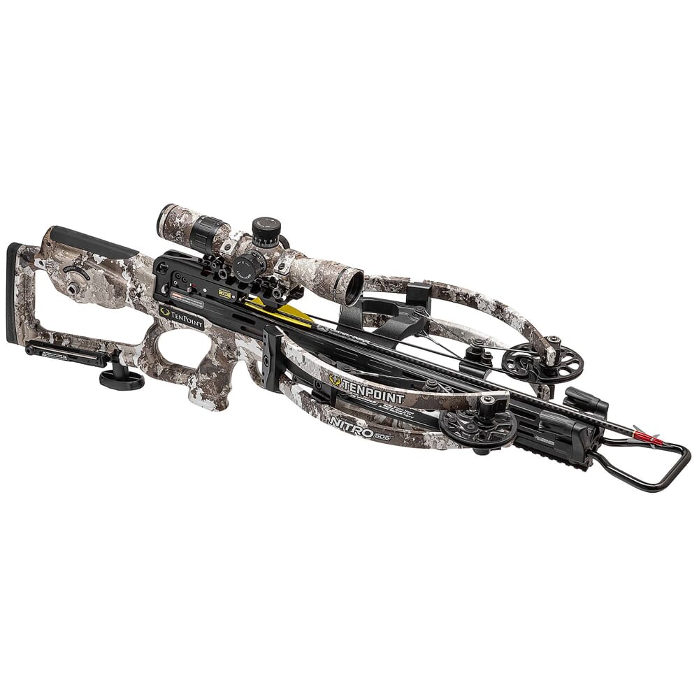 For better performance in the field, this crossbow ships with TenPoint’s EVO-X Marksman Elite Scope. It features a glass etched, illuminated reticle in a duplex configuration that’s been calibrated for 20, 40, and 60 yards. The reticle also has two illuminated dots calibrated for targets at 30 and 50 yards, as well as non-illuminated chevrons for targets at 70, 80, 90, and 100 yards. Other features of the EVO-X Marksman Elite Scope include fully multi-coated lenses, for superior brightness and an optimal field of view.