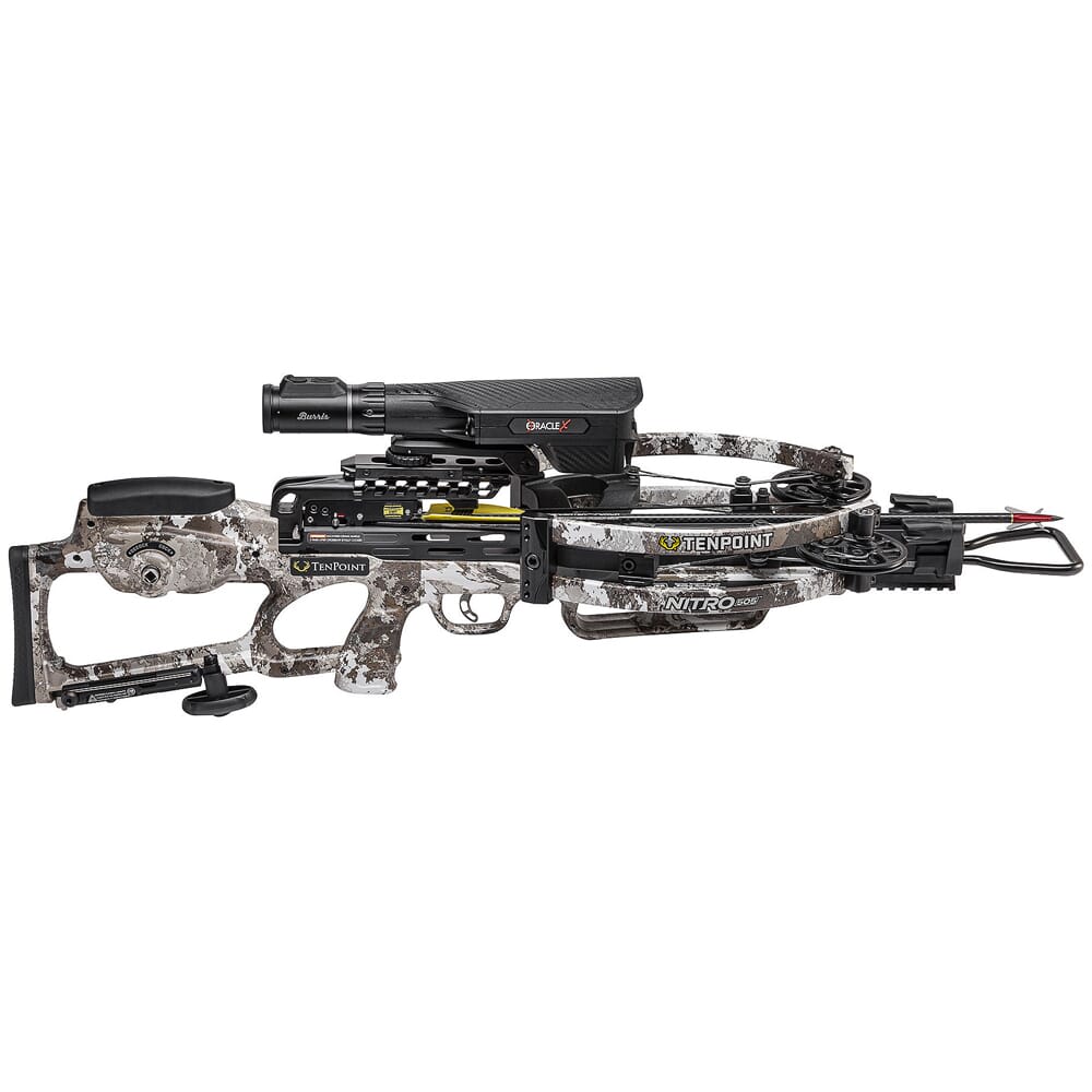To get the most out of your crossbow’s performance, the Nitro 505 ships with Burris’s Oracle X Crossbow Rangefinding scope. This advanced optic is outfitted with an integrated laser rangefinder which can be activated with a wireless remote, or by pressing the range button on the scope. The Oracle X can provide accurate ranging measurements on game up to 200 yards away (500 yards on reflective targets), and displays an exact aiming point that takes into account both distance and angle compensation, and remains constant throughout the scope’s 2x to 7x magnification range. The Oracle X is adjustable for windage and elevation, and mounts to the crossbow via picatinny mount.