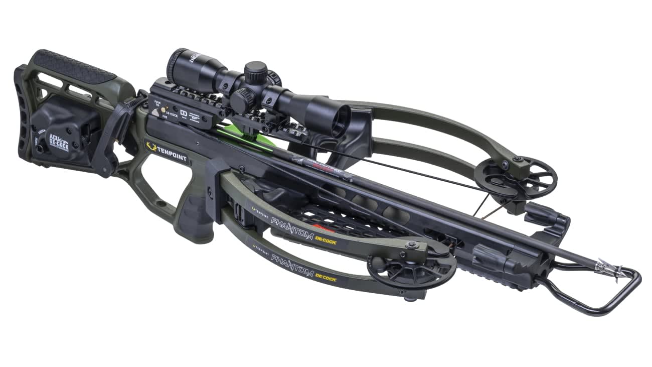 The TenPoint Phantom Decock is a streamlined, value-packed crossbow package that delivers reliable performance and TenPoint's trusted engineering in an accessible, easy-to-use configuration ideal for hunters of all experience levels. The included Pro-View 400 scope provides a clear, precise sight picture with multiple illuminated reticle options calibrated for crossbow trajectories, ensuring accurate shot placement at a variety of distances. Built around TenPoint's ACUdraw De-Cock system, this crossbow offers convenient, assisted cocking and safe de-cocking capability without the premium price tag of the ACUslide, making it an outstanding value for hunters seeking a dependable, feature-rich crossbow. The distinctive Moss Green finish provides natural camouflage concealment in a wide range of hunting environments while giving the Phantom a clean, classic aesthetic that stands apart from conventional camo patterns.